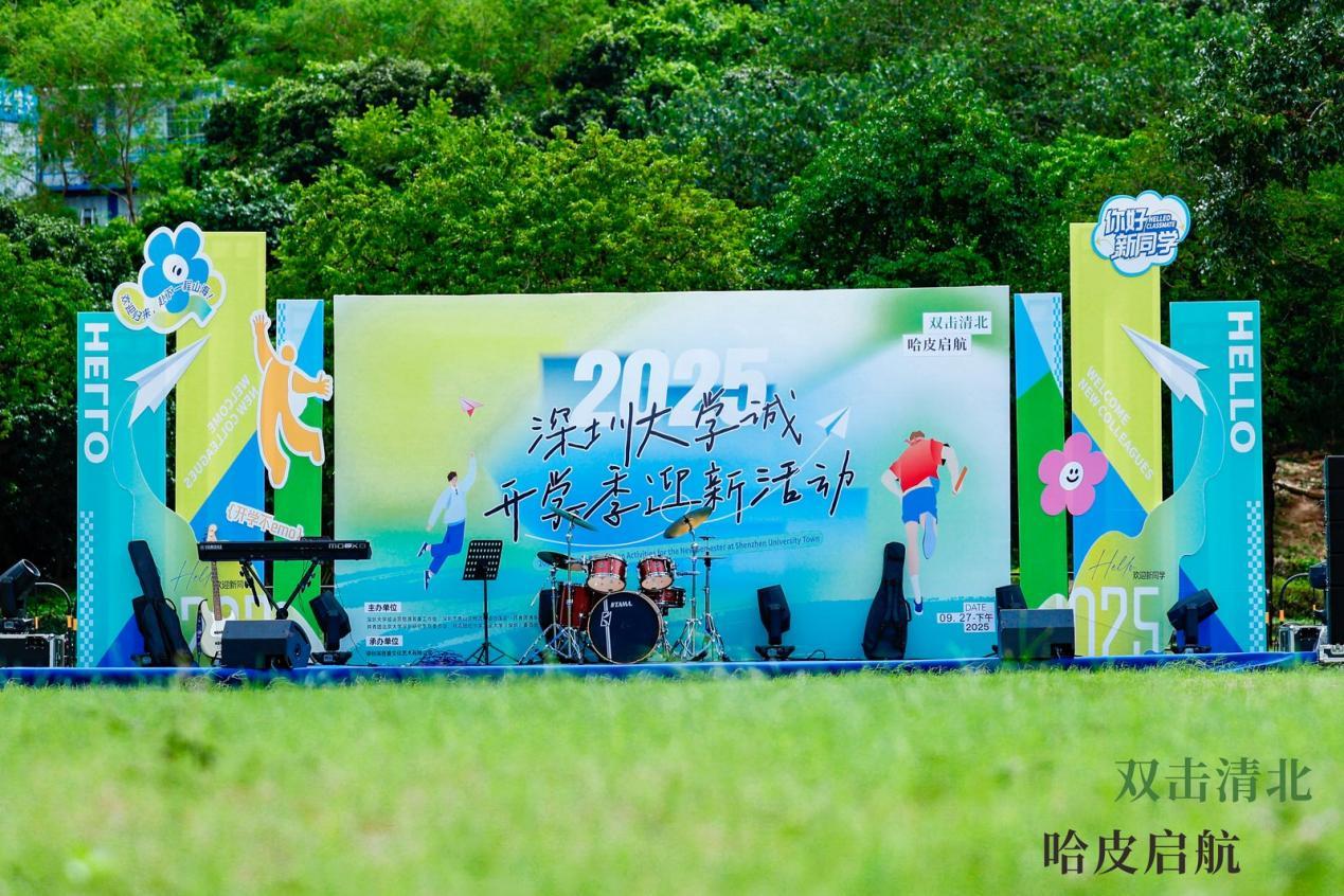 9月27日下午,深圳大学城国际会议中心后方草坪人声鼎沸、灯火璀璨——由深圳大学城运营管理筹备工作组、深圳市南山区桃源街道办事处、共青团清华大学深圳国际研究生院委员会、共青团北京大学深圳研究生院委员会、共青团哈尔滨工业大学(深圳)委员会联合主办的“青春启航・共融鹏城”2025级新生开学季活动正式启幕。