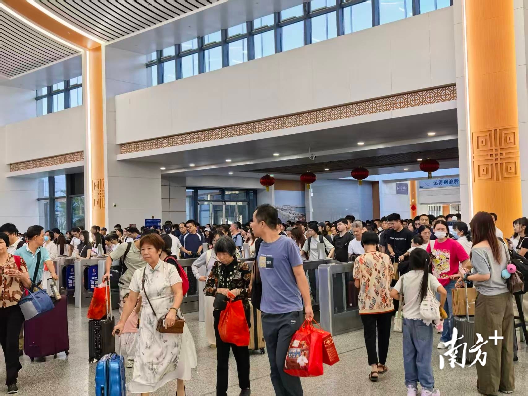 今年国庆中秋“双节”铁路运输期自9月29日至10月10日,共计12天。在此期间,高铁潮汕站累计到发旅客92.66万人次,日均超7.72万人次,同比增长12.55%。其中,10月1日到达旅客6.55万人次、到发旅客9.95万人次,10月7日、8日分别发送旅客5.23万人次和5.47万人次。这些数据均处于客流高位,显示出旺盛的出行需求。