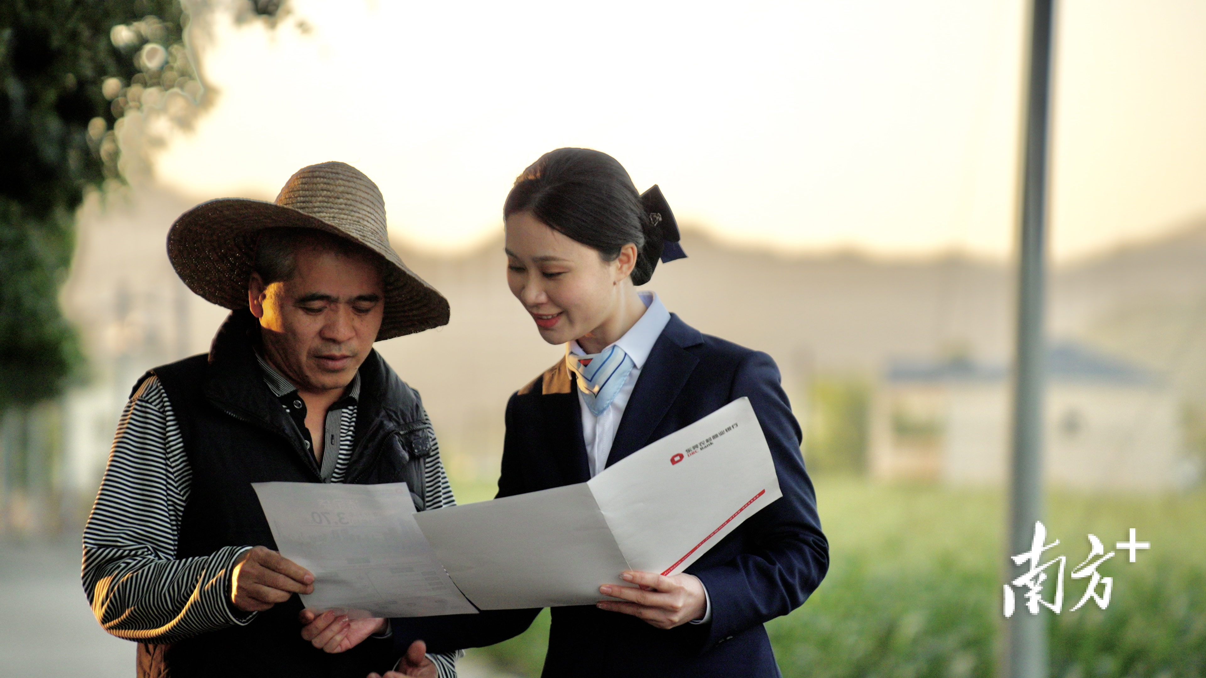 东莞农村商业银行客户经理面对面为农户讲解金融产品。