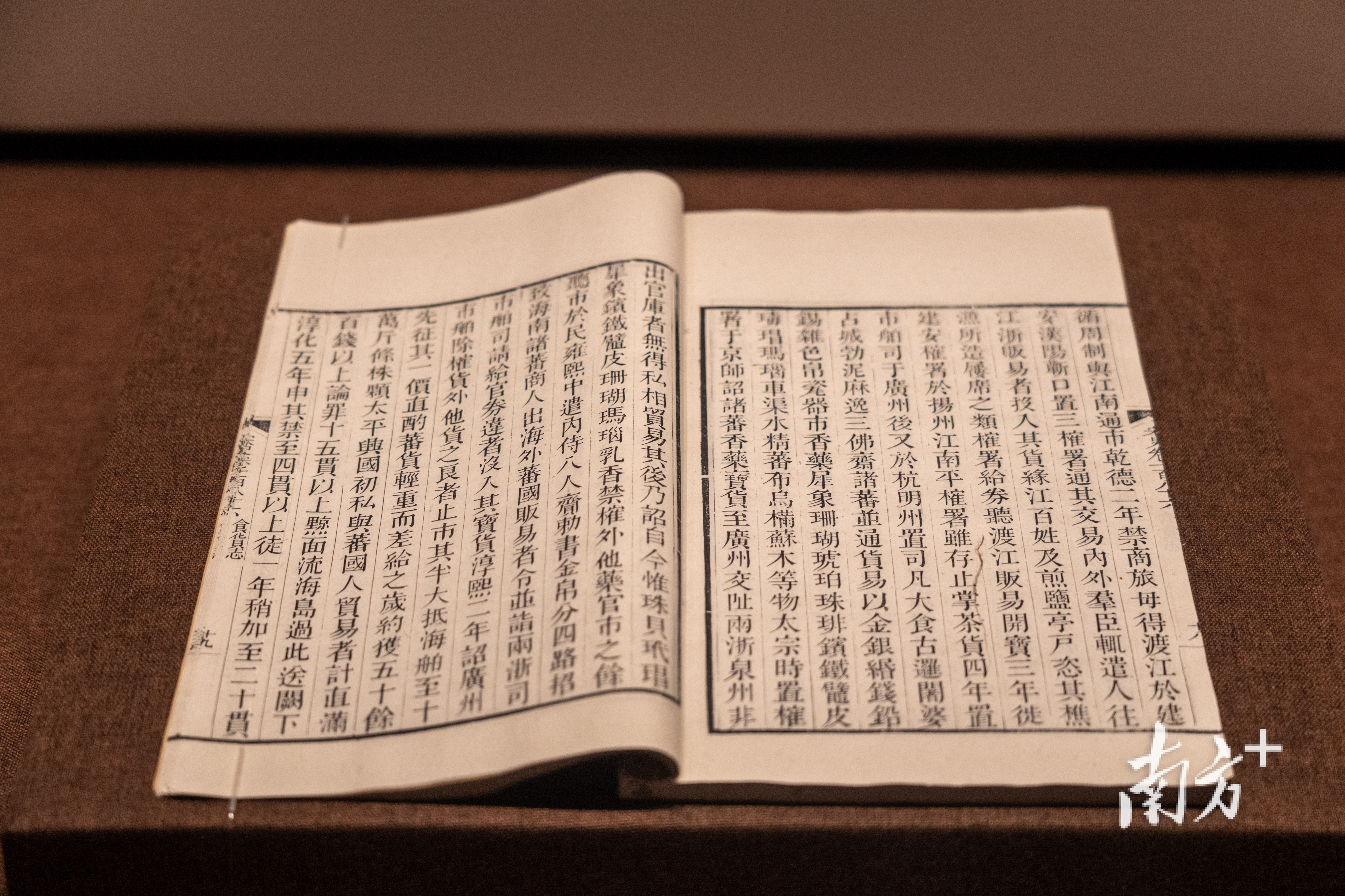 透过展柜内的古籍文献,观众以获取广东外贸制度演变的“线索”:唐代设立市舶使,主要驻于广州;宋代在广州首设市舶司,到了宋元时期,便逐步推广至东南沿海的各个港口。