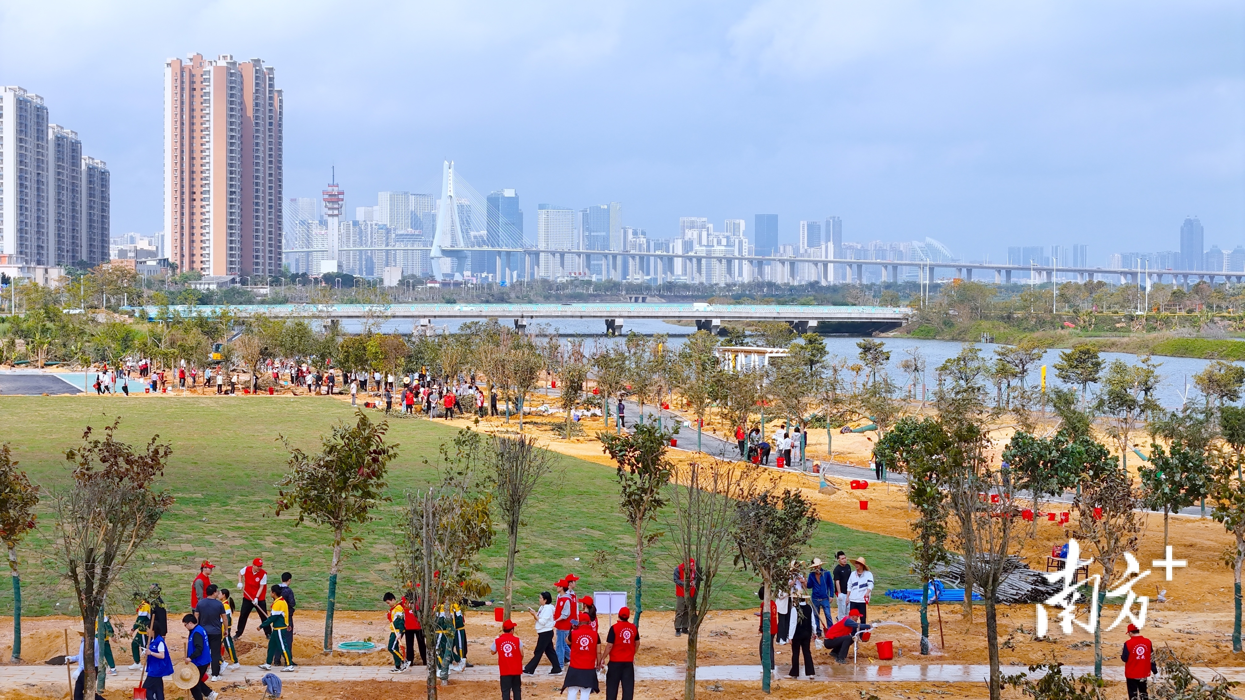 湛江市2026年全民义务植树活动在南调河绿美生态示范点举行。吴东俊 摄