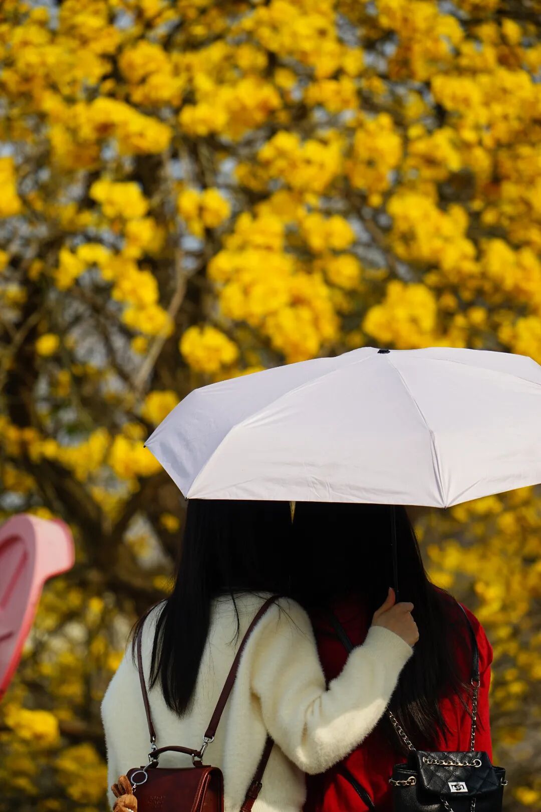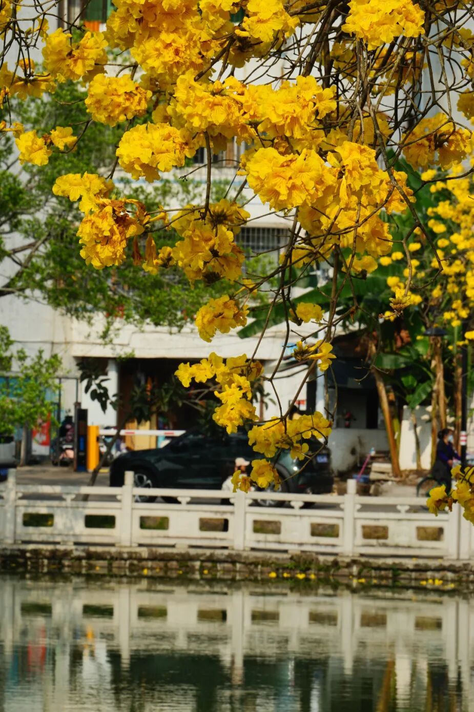 菱湖边的黄花风铃木。摄影:@罗兜兜