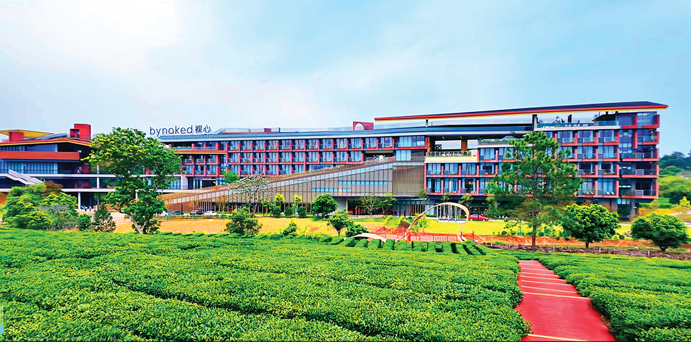 项目所在的博罗县柏塘镇拥有连绵起伏的万亩茶园,依托这一独特资源,项目将茶文化贯穿于设计、服务与体验各环节。在落成仪式上,裸心集团有关负责人介绍:“我们并不是从建设一个酒店开始,而是从理解这片土地开始。从前期的调研,到对当地文化的理解与热爱,我们将茶文化赋予到空间的设计上,从运营到体验,将茶融入到日常的服务当中。”
