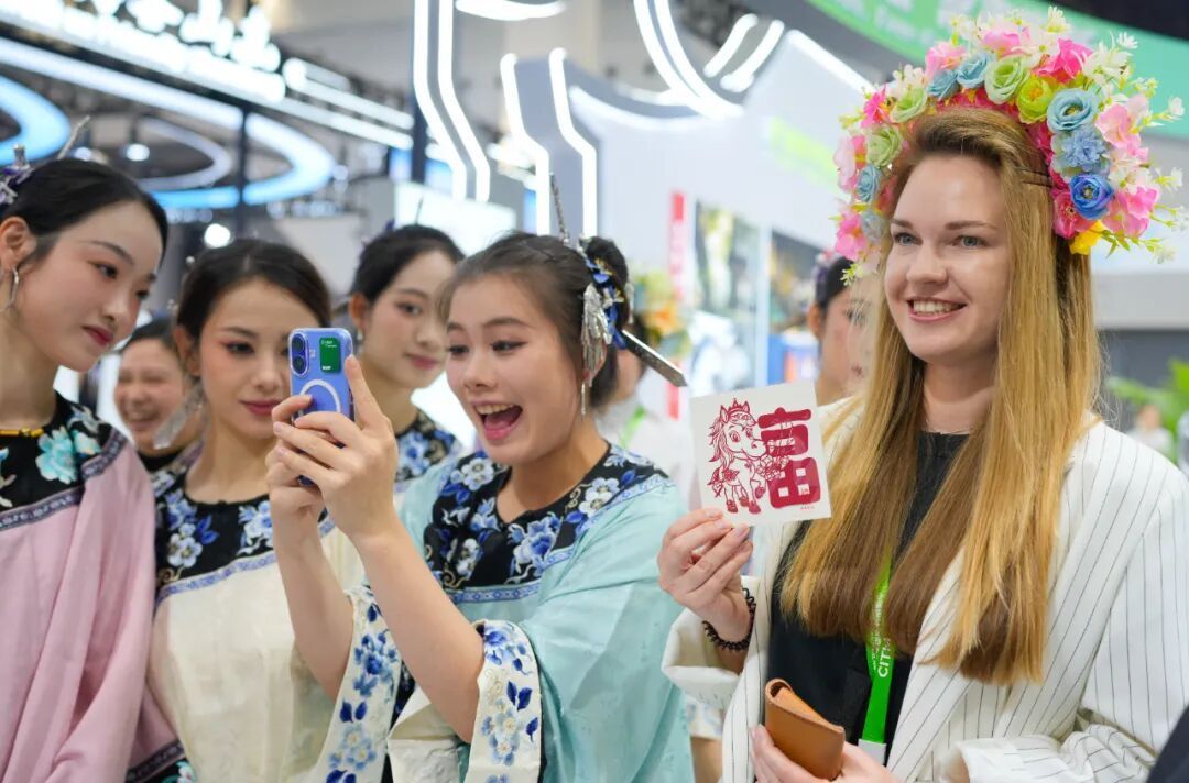 ▲2025年12月19日,以“你好!中国”为主题的2025中国国际旅游交易会在海口开幕,参会外籍嘉宾头戴簪花,开心留影。旅交会自2001年起固定在上海、昆明两地交替举办,这是首次于海南举办,吸引了来自101个国家和地区的一千余名旅行商及代表参会