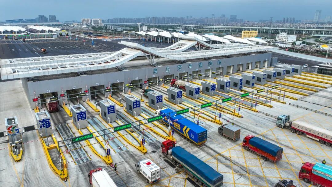 ▲2025年12月18日,出岛货车有序经过海口新海港和南港“二线口岸”(货运) 集中查验场,这里承担着海南全岛约80%的货车出岛任务