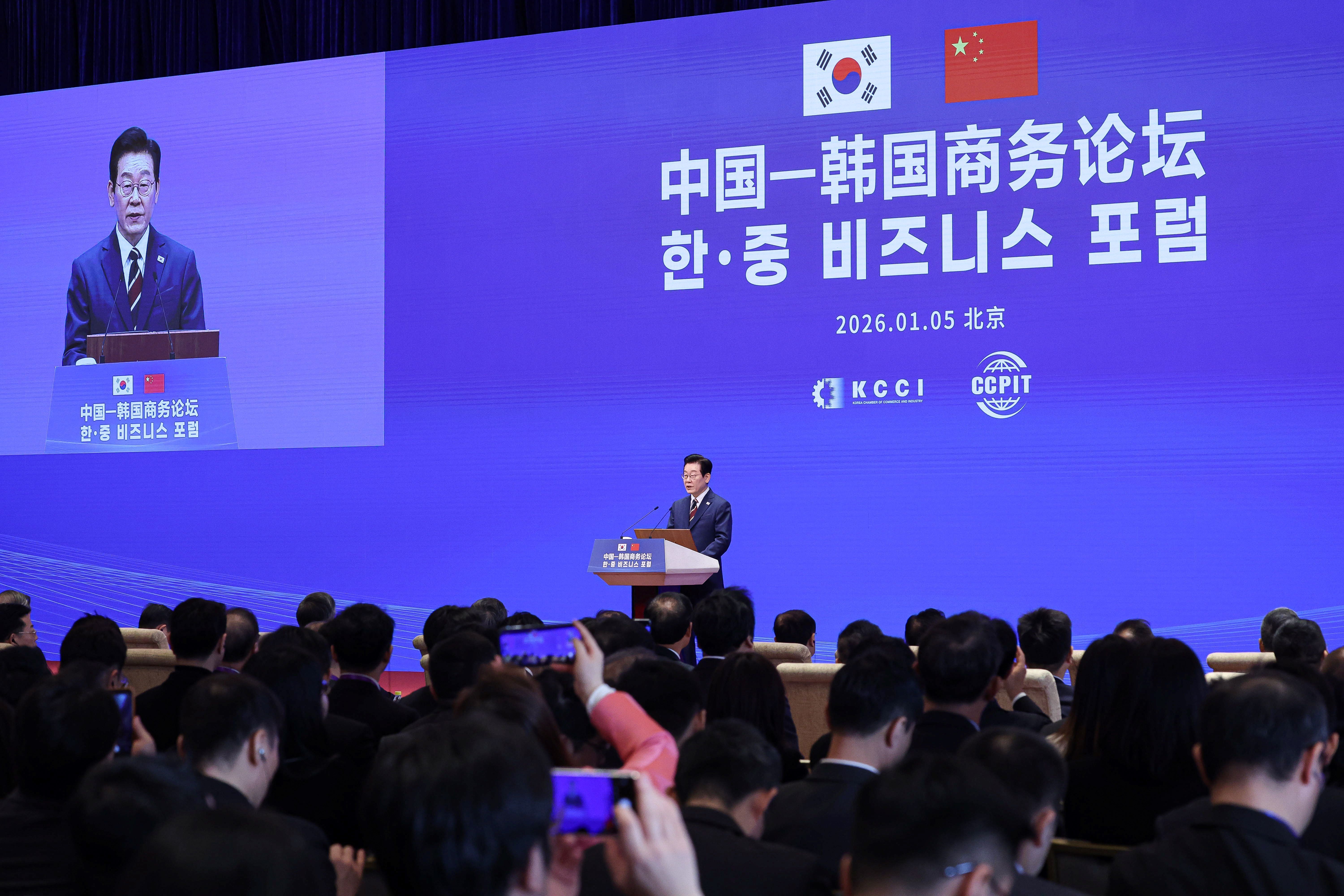 1月5日,李在明出席中国—韩国商务论坛。CFP供图