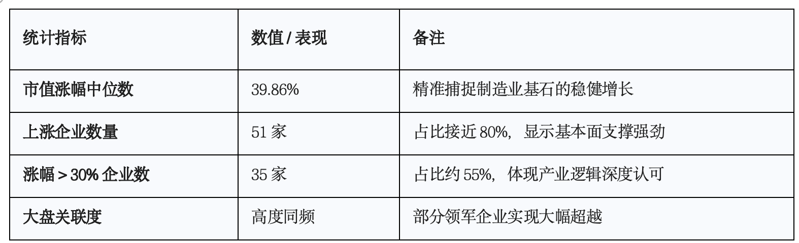 从整体表现看,东莞上市公司涨幅中位数达39.86%,跑赢大盘平均水平。全市64家A股上市企业中,有51家实现股价上涨,占比接近80%,其中涨幅超过30%的企业达到35家,反映出市场对东莞“科技创新+先进制造”发展路径的积极预期。