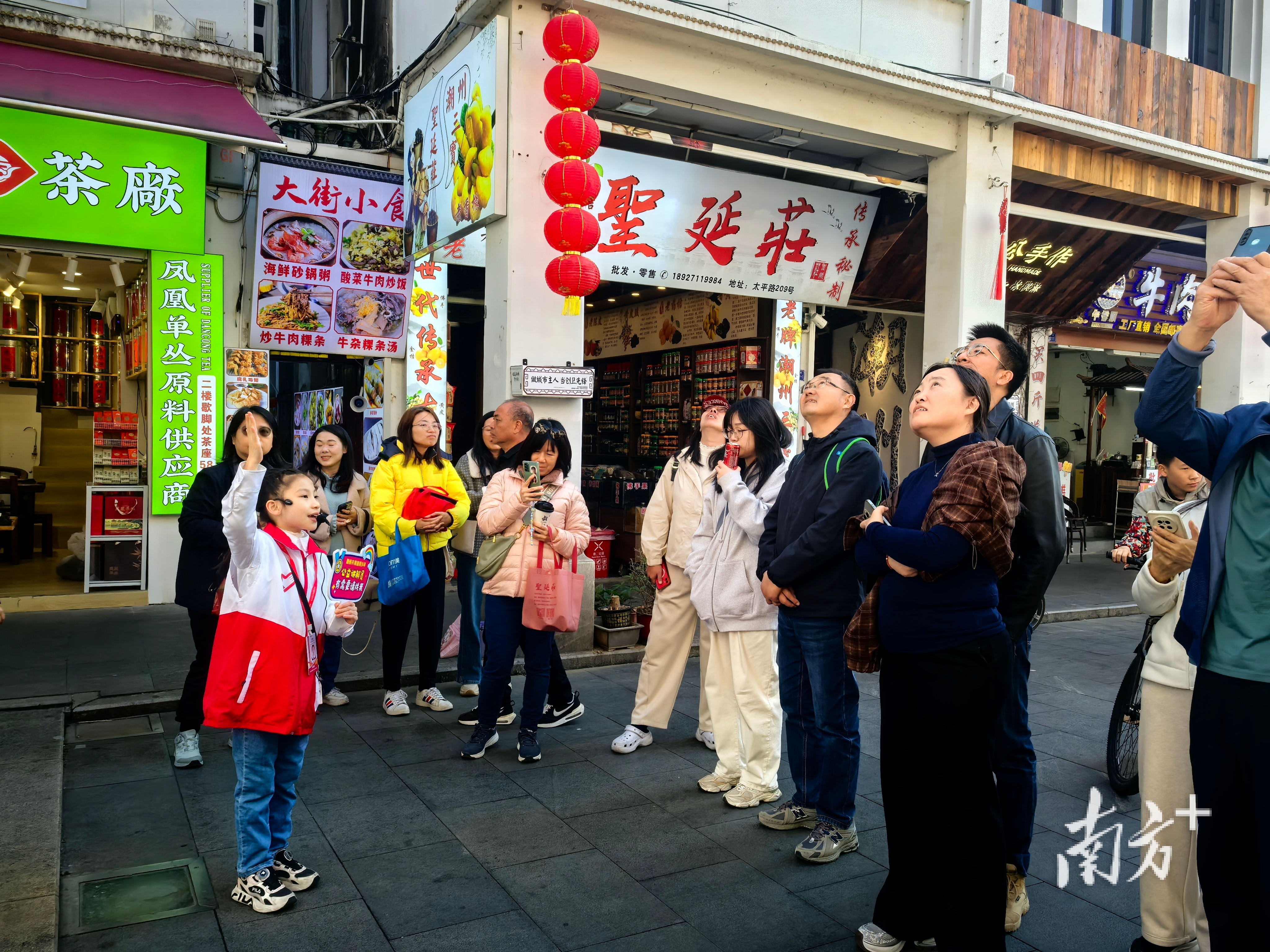 放眼全省,各地市依托特色资源推出丰富美食与促消费活动,掀起一阵阵消费热潮。深圳盐田中英街乐购小镇上演“乐享中英街”深港文化秀,配套免税好物淘购、地道美食打卡路线,吸引大量游客前往;韶关孟洲坝夜市连续举办跨年夜、烧烤节、美食节等“粤式新潮流”主题活动,活动现场人声鼎沸、客流如潮;潮州古城的文化地标潮州府署游人如织,英歌舞、潮剧、节令鼓、潮州大锣鼓等节目轮番登场。长沙市民胡先生和朋友相约到潮汕游玩,“牛肉火锅特别好吃!我们还买了几袋牛肉丸、牛筋丸带回家。”