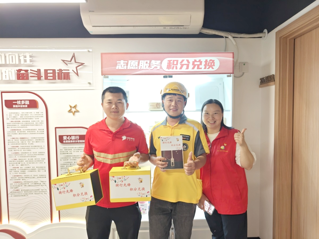 积分计划兑出正向循环。制定积分“五入”管理办法,将骑手的治理贡献转化为实实在在的获得感。小哥们上报有效线索即可获得积分,用于兑换体检套餐、意外保险等服务和物资,表现突出者还可参评“优秀新业态志愿者”、优先考虑推荐入党。