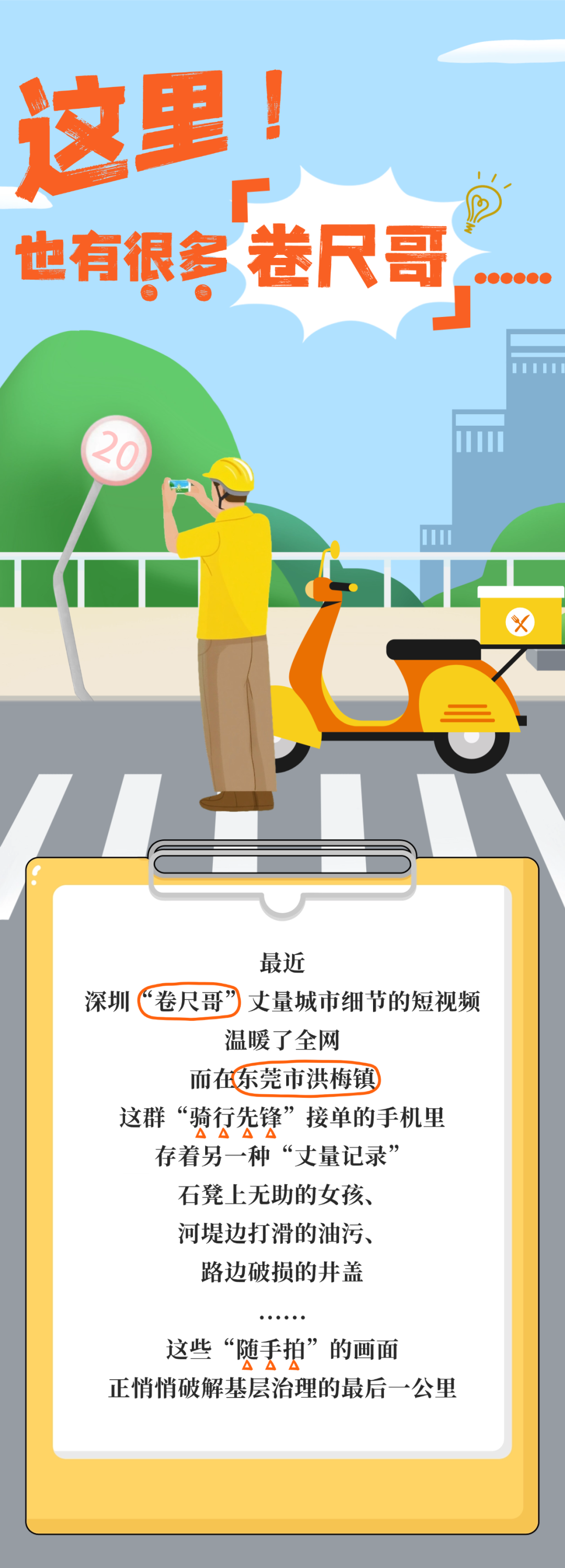 如今,在洪梅的大街小巷,越来越多“骑行先锋”正活跃在服务与守护的第一线,他们手中没有具象化的卷尺,但却有着与深圳“卷尺哥”一样的“卷尺精神”,以微小却坚实的行动,共同守护着城市的文明与温暖,成为共建共治共享美好家园中一处亮丽、流动的风景。