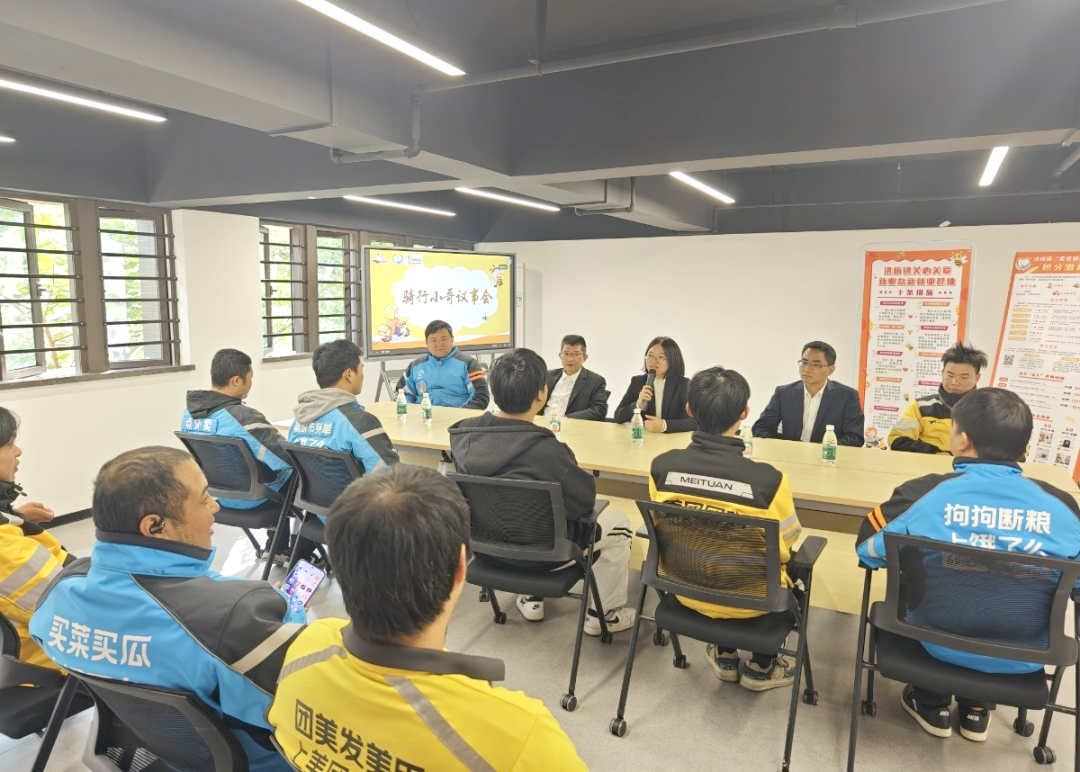 关心关爱活动凝聚人心。聚焦新就业群体急难愁盼问题,镇社会工作事务中心牵头,整合各职能部门、爱心企业等资源,定期组织开展交通安全讲座、健康义诊、“小哥议事会”等多场暖“新”活动,切实增强了他们的归属感和职业认同感。
