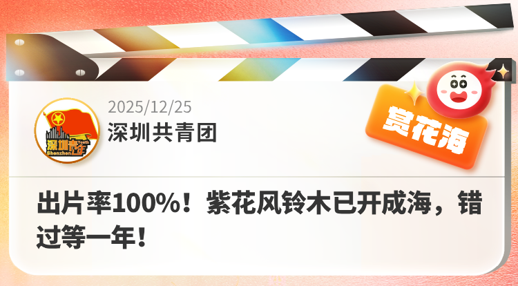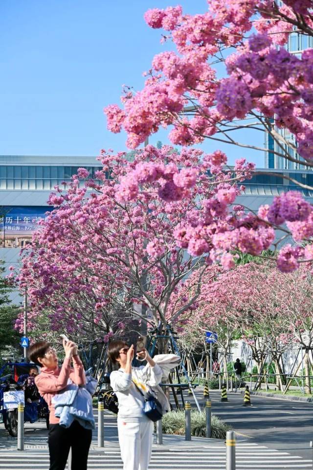 当下,紫花风铃木已悄然缀满枝头,满树粉紫不见叶,出片率100%!一起走进深圳街头巷尾,邂逅这抹冬日限定的温柔吧。@深圳共青团