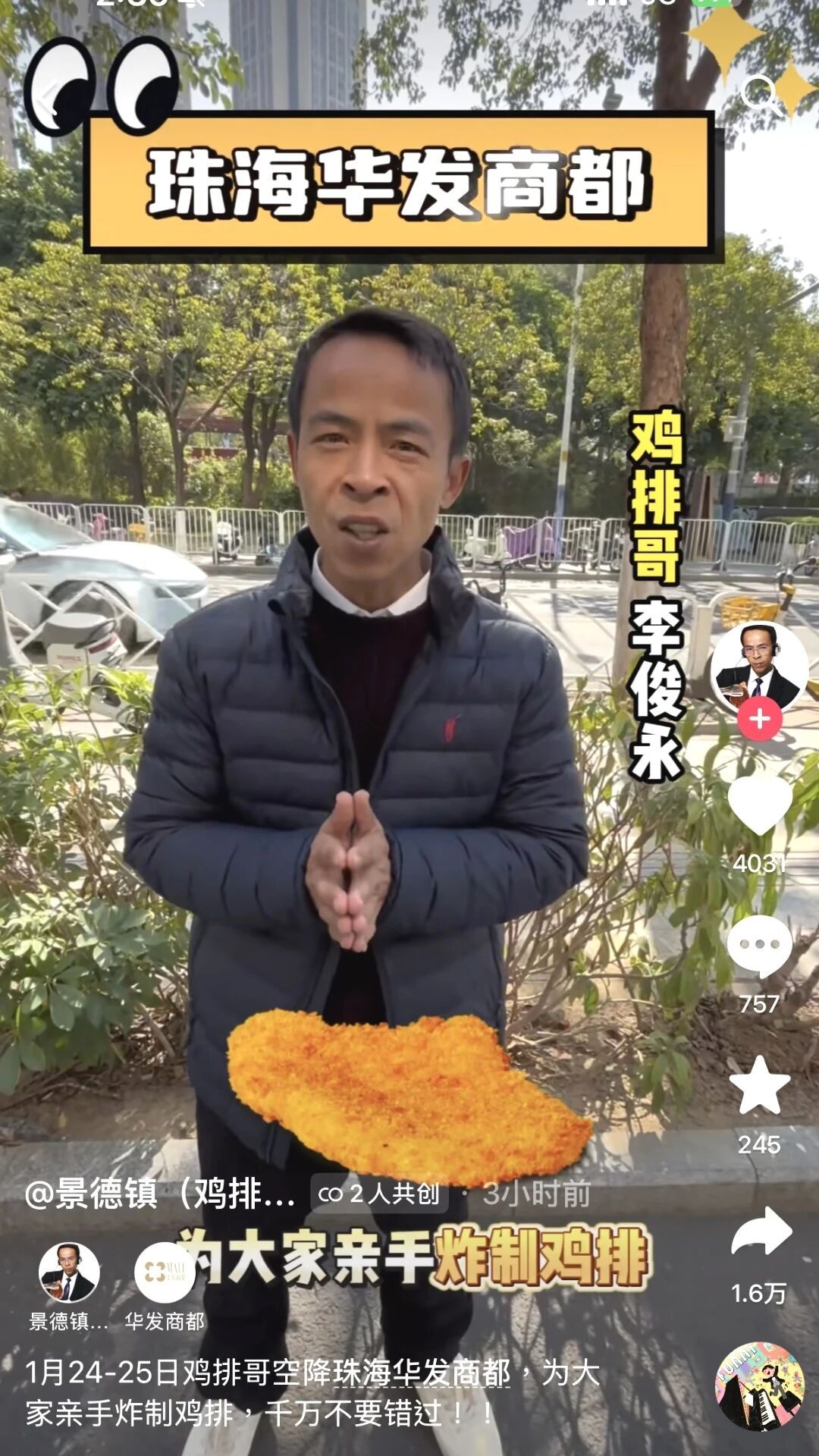 这段时间,“鸡排哥”开启了其全国“巡炸”之旅。此次珠海之行,市民游客将有机会在华发商都,品尝到“鸡排哥”亲手炸制的鸡排。感兴趣的朋友可提前规划时间前往,在享受美味的同时有序排队,共同维护良好体验。