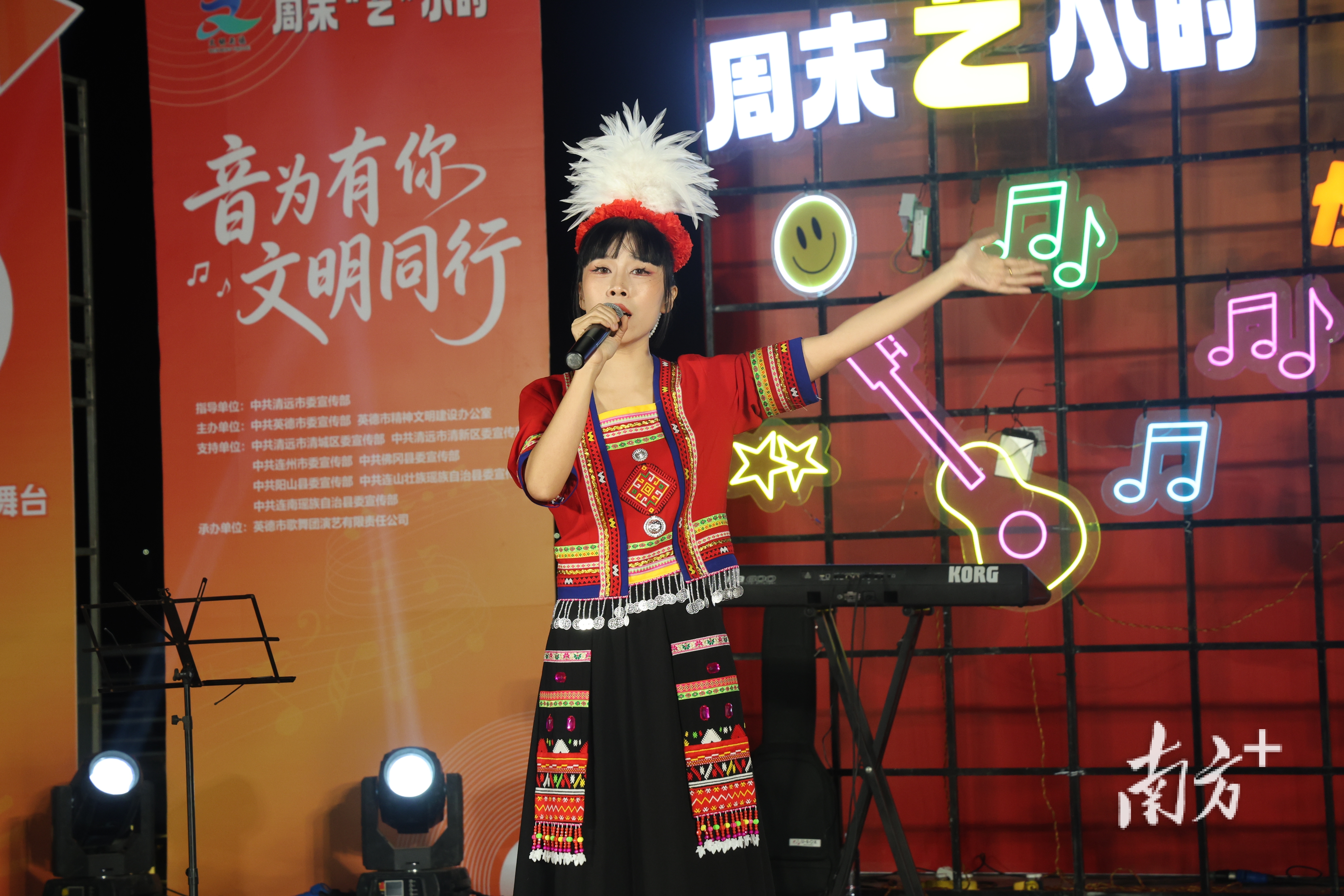 “现场群众太热情了,氛围非常好。也认识了许多优秀的老师,可以一起交流音乐和各地的文化特色。”来自连南的表演者婷婷带来歌曲《至少还有你》,今晚她还特意穿上瑶族特色服饰走上舞台,向广大市民群众展示瑶族特色文化。“欢迎大家来连南游玩,连南山美水美。”
