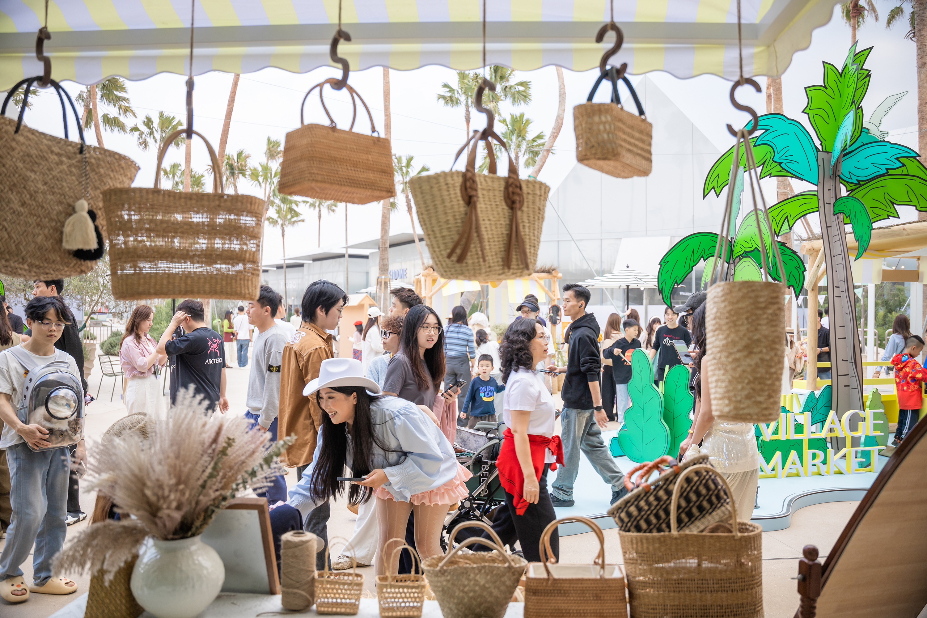 在购物村的西北角,Village Market市集藏着满满的烟火气,美食好味、周边盲盒、中古好物、艺术工坊一应俱全。游客们穿梭在各个摊位间,还能邂逅“村民”与“神奇动物”。手风琴的悠扬旋律萦绕其间,市井烟火与文艺气息在此交融。