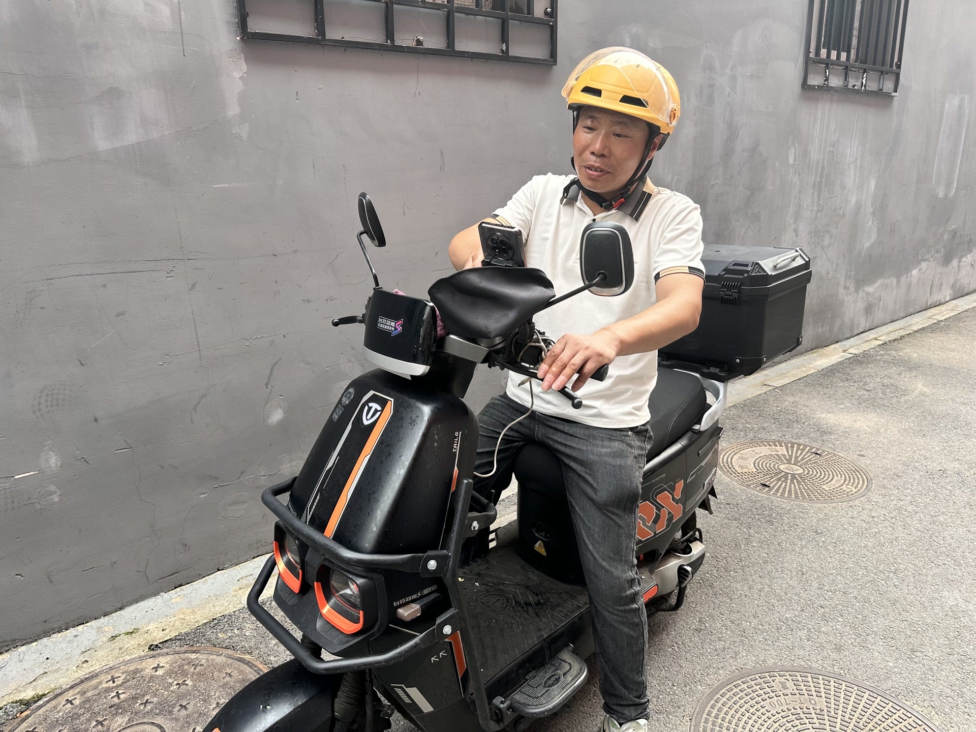 孟世祥骑上电动车开始接单送外卖。