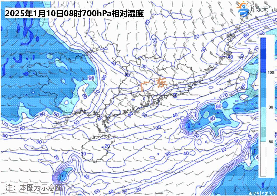温馨提醒1.冷空气影响,早晚气温较低,请注意防寒保暖。粤北和珠三角北部地区请注意防御低温、霜(冰)冻,高海拔山区请注意交通安全。种植业、畜牧和水产养殖业请做好防寒保温。2.广东附近海面风力较大且持续时间较长,需注意海上作业和交通安全。3.未来一周没有明显降水,天气干燥,请注意森林防火和家居用火用电安全。