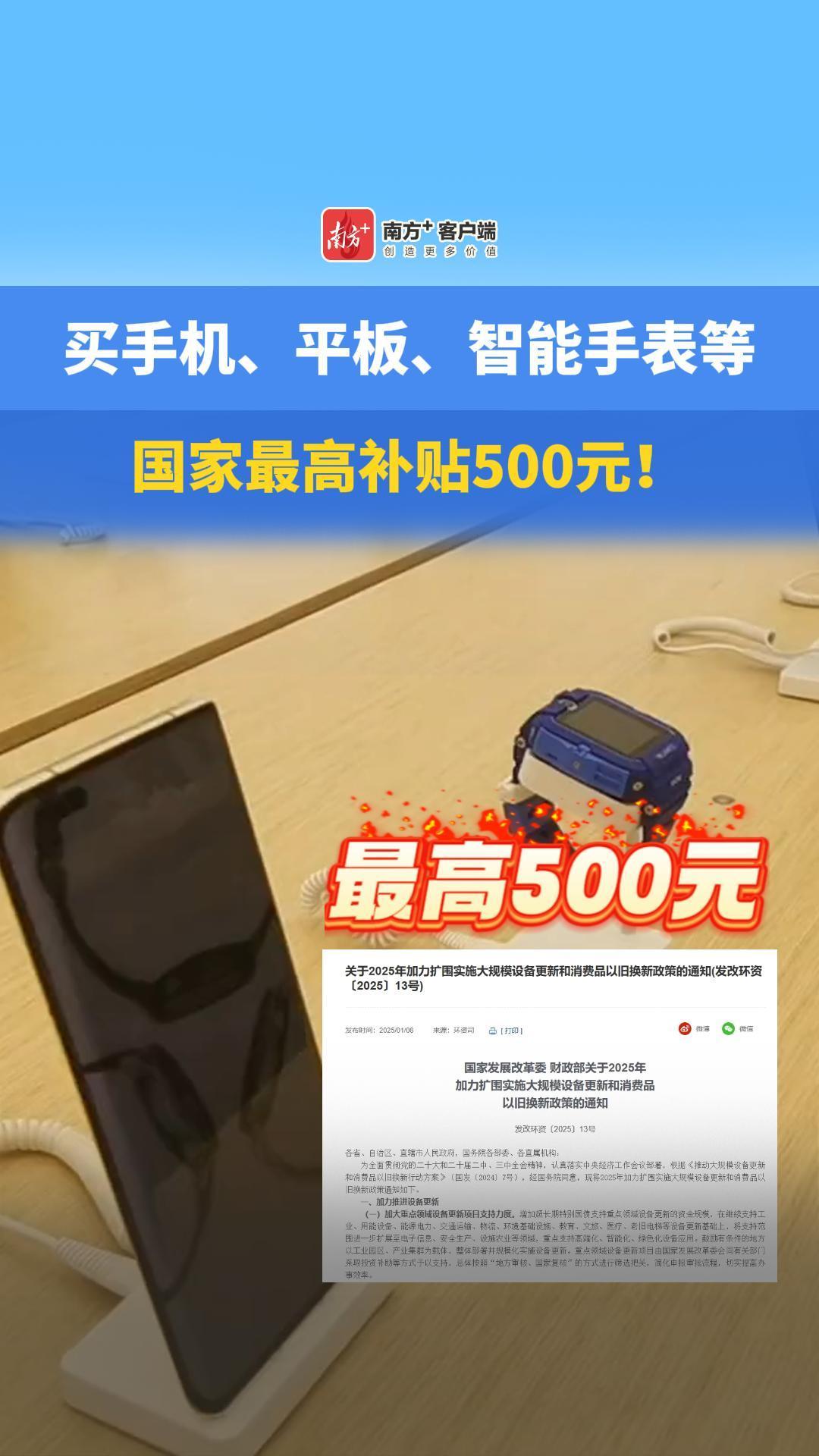 下周,手机购新补贴来啦!对于单件销售价格不超过6000元的产品,按照产品销售价格的15%给予补贴,每件补贴不超过500元。此外,手机等三类数码产品补贴为购新补贴,不是以旧换新,不以交旧为前提。详情>>