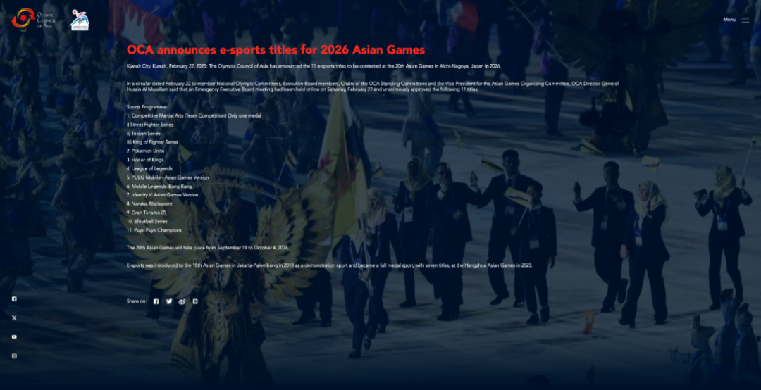 国际奥委会近日宣布,第一届电竞奥运会将于2027年在沙特阿拉伯利雅得举行。亚洲奥林匹克理事会(OCA)日前在其官网正式发布了《2026年亚洲运动会电子竞技项目名单》,广州本土企业网易游戏自主研发的《第五人格》成功入选,成为本届亚运会唯一入选的非对称对抗类电竞项目。