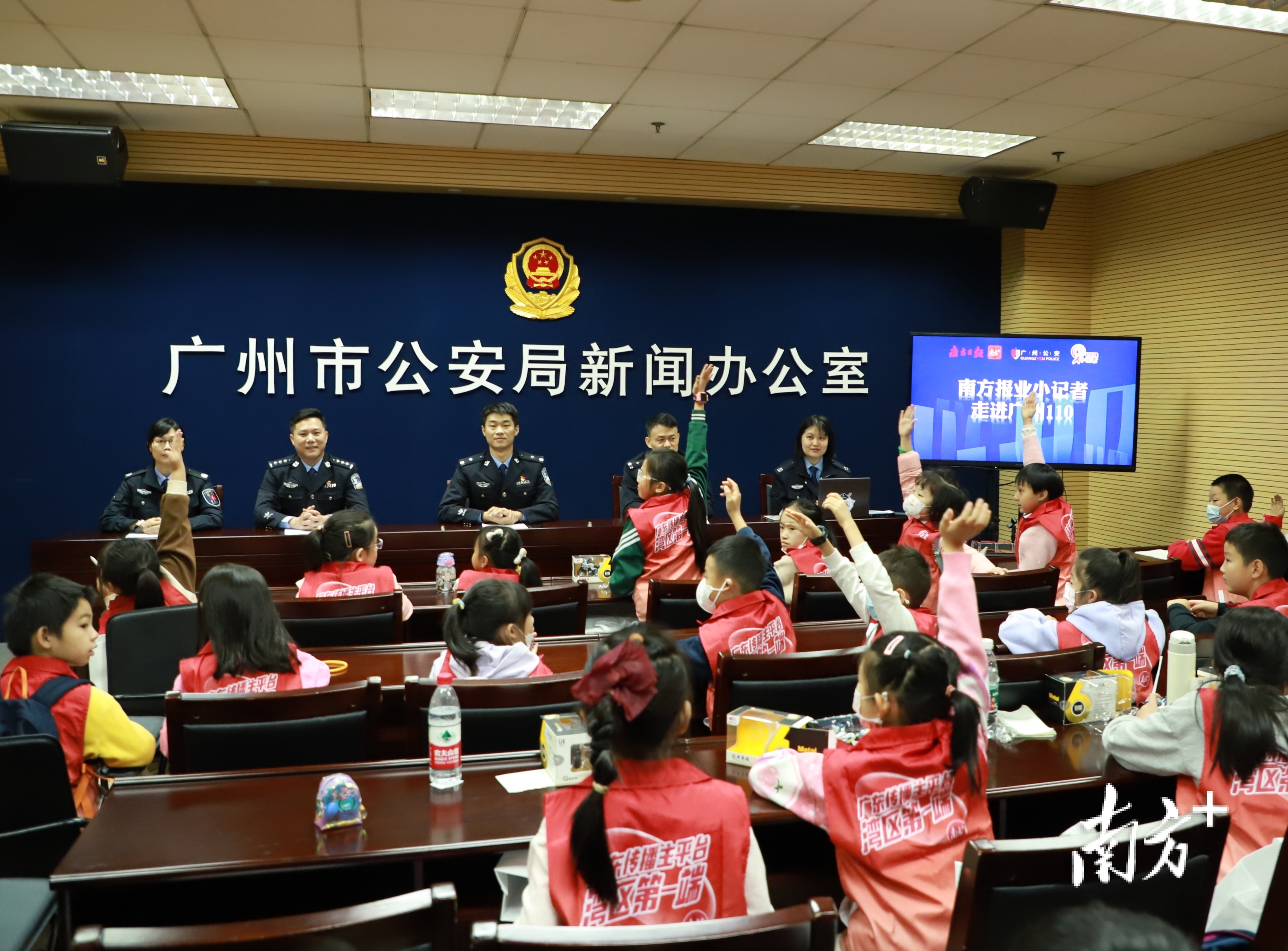 体验结束后,小记者们在广州市公安局新闻办公室,向广州110报警服务台的工作人员提问。