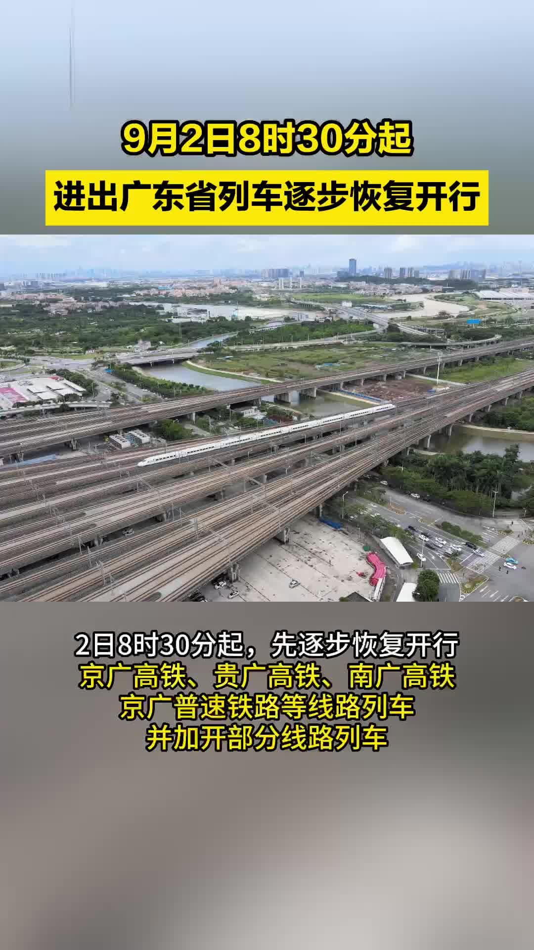 9月2日8时30分起进出广东省列车逐步恢复开行