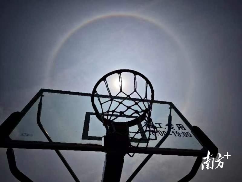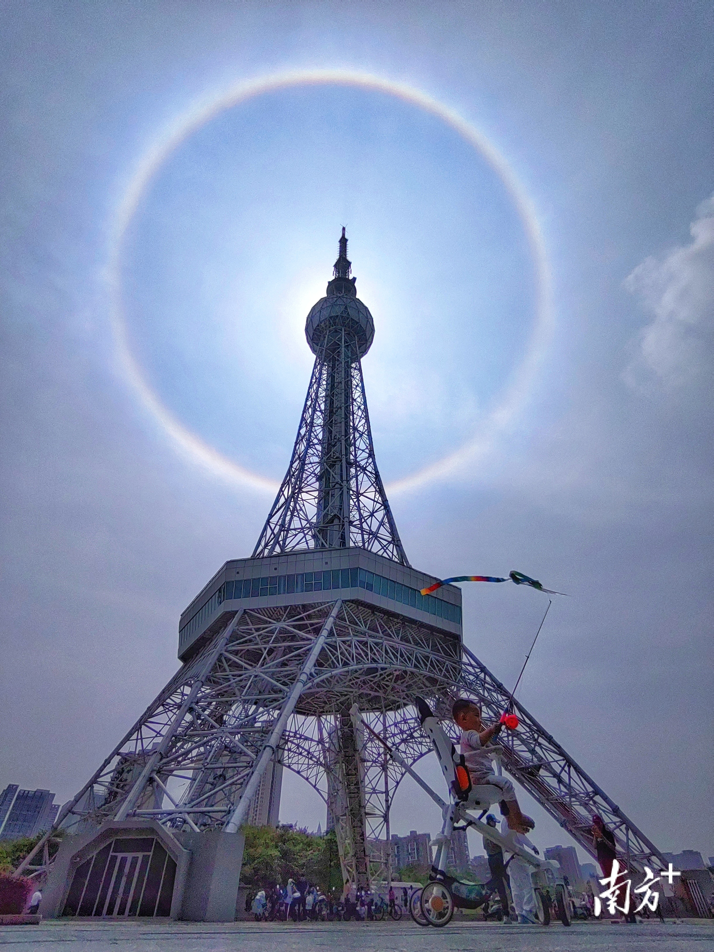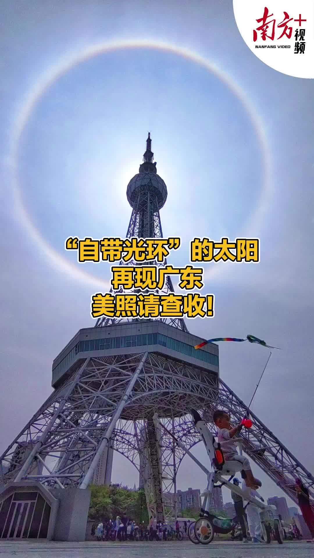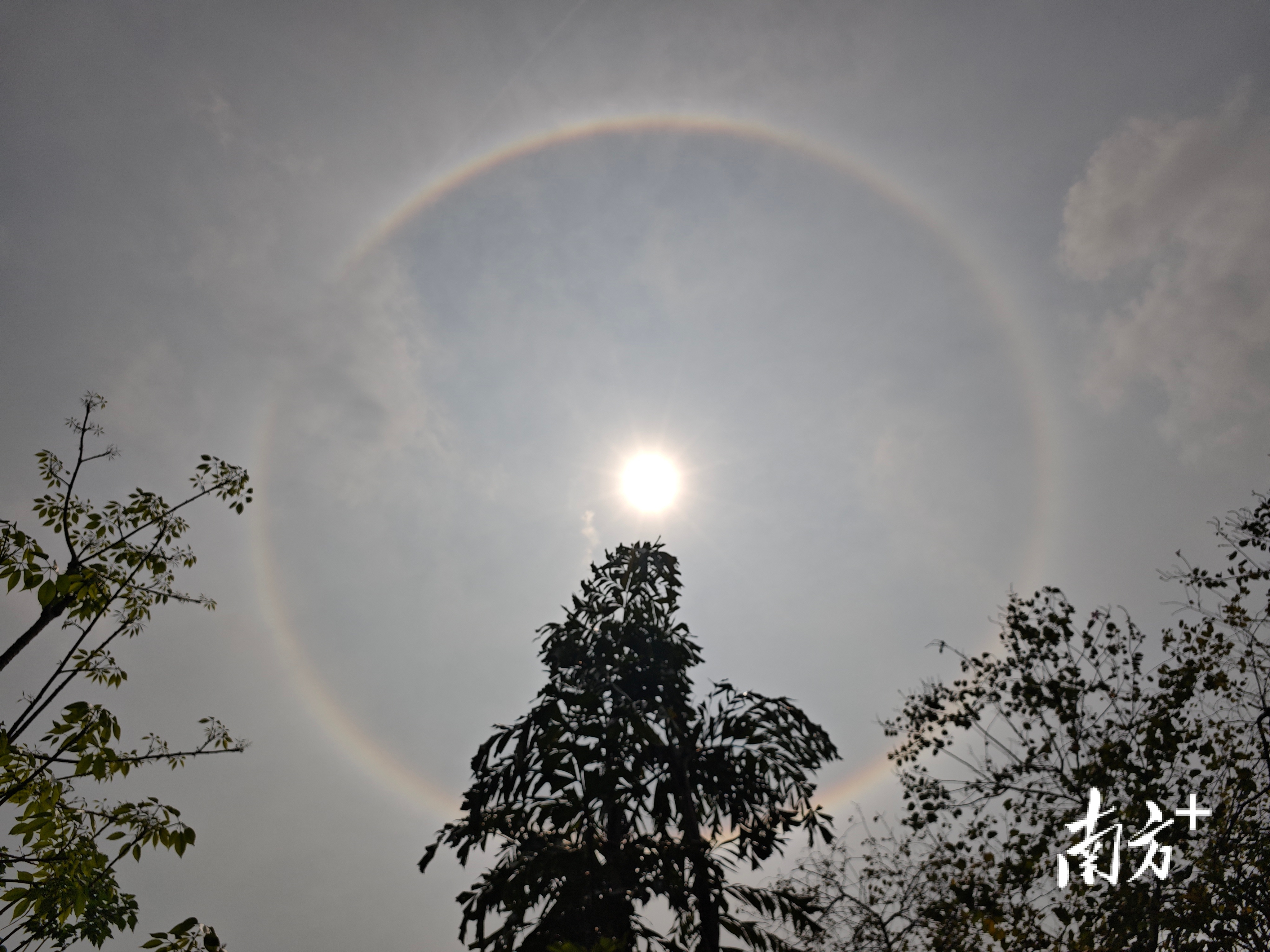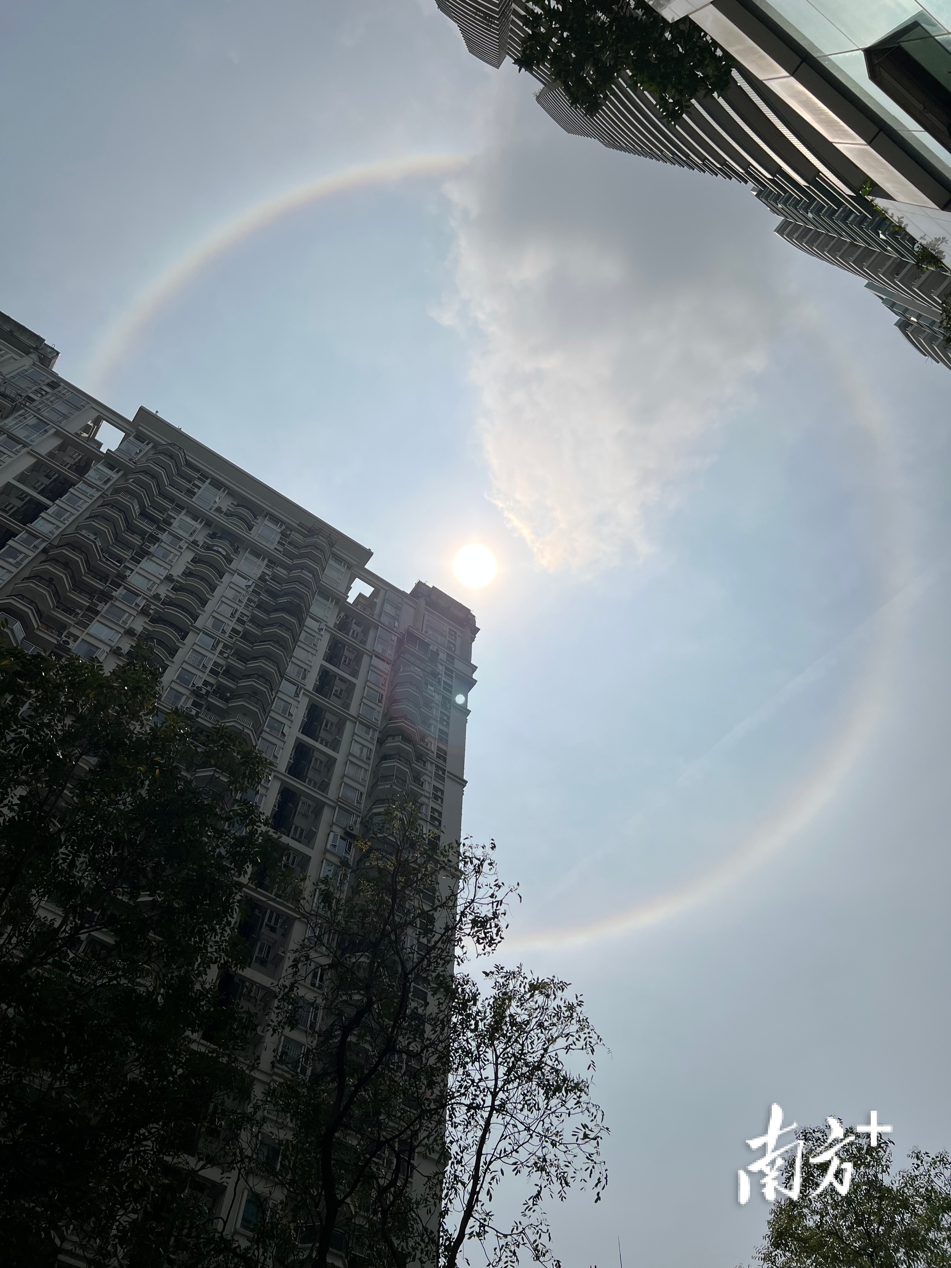 4月13日,市民在广州、深圳、佛山等地观察到日晕现象,太阳旁边有一圈肉眼可见的光环。