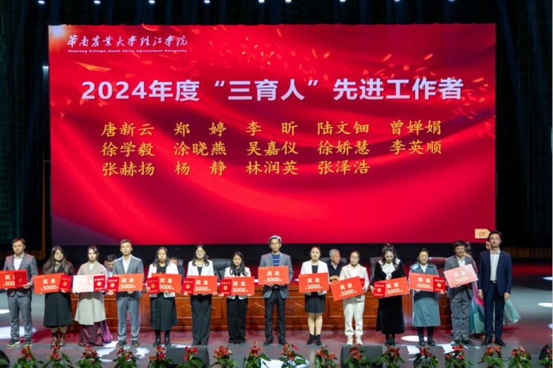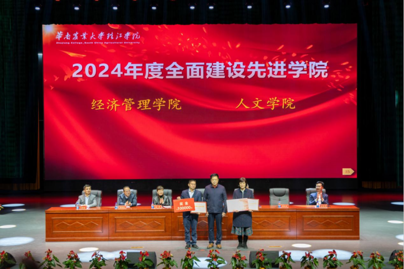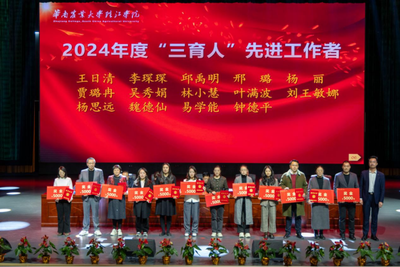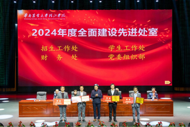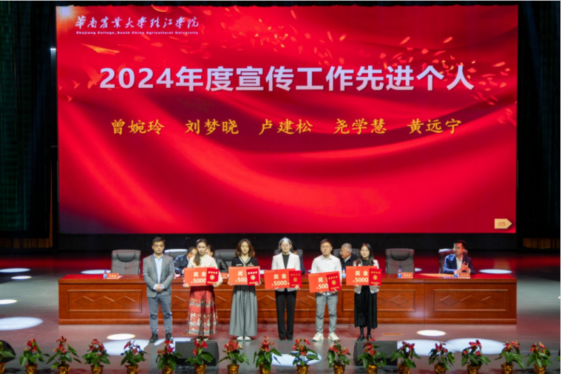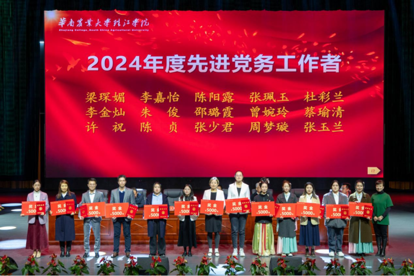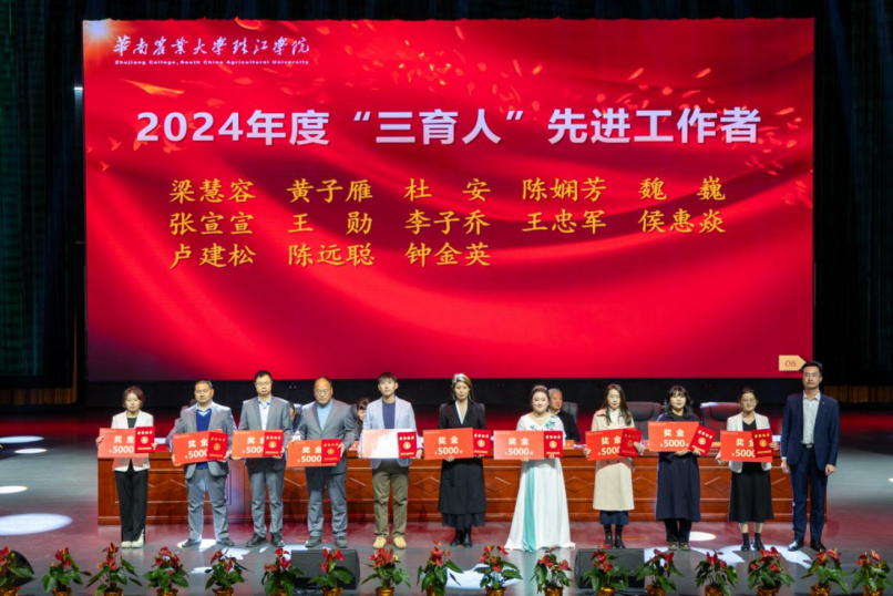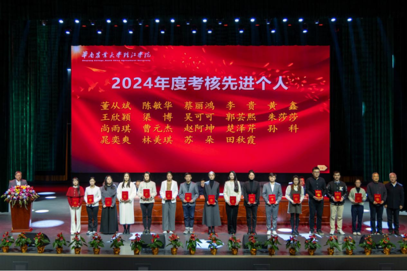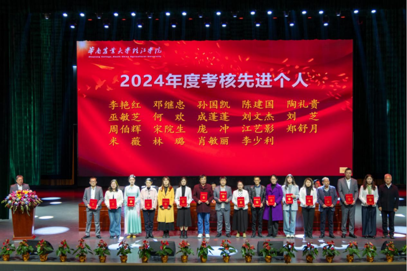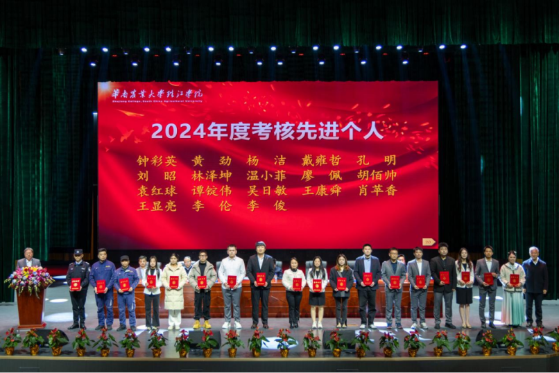 华珠新篇,同耀星辉。过去的一年,全体师生紧紧围绕“十个一流”建设发展目标,扎实推进“三年行动计划”,高质量发展取得累累硕果。为表彰先进典型,增强集体凝聚力,1月10日下午,华南农业大学珠江学院2024年度表彰大会暨2025年新春文艺联欢会在珠江剧院举行。华珠董事长陈香山,校长蒋恩臣,党委书记赵凤,副校长袁炎清,党委副书记、副校长赵春辉,原校长助理汪文平,校长助理马雷猛出席表彰大会,同全体教职工一起观看演出,喜迎新年的到来。