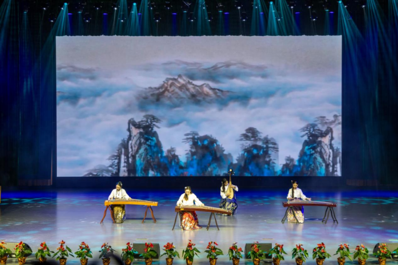 由美育中心、大湾区影视学院工会带来的《青花瓷》节目,表演者们身着传统服饰,手持各式民族乐器,乐曲悠扬,动人心弦,将青花瓷的细腻与雅致以乐曲弹奏的形式完美呈现。