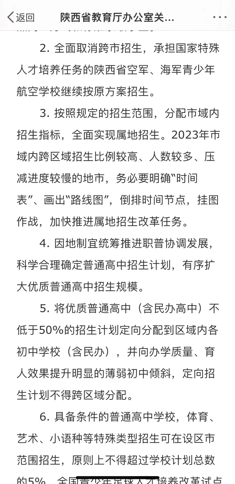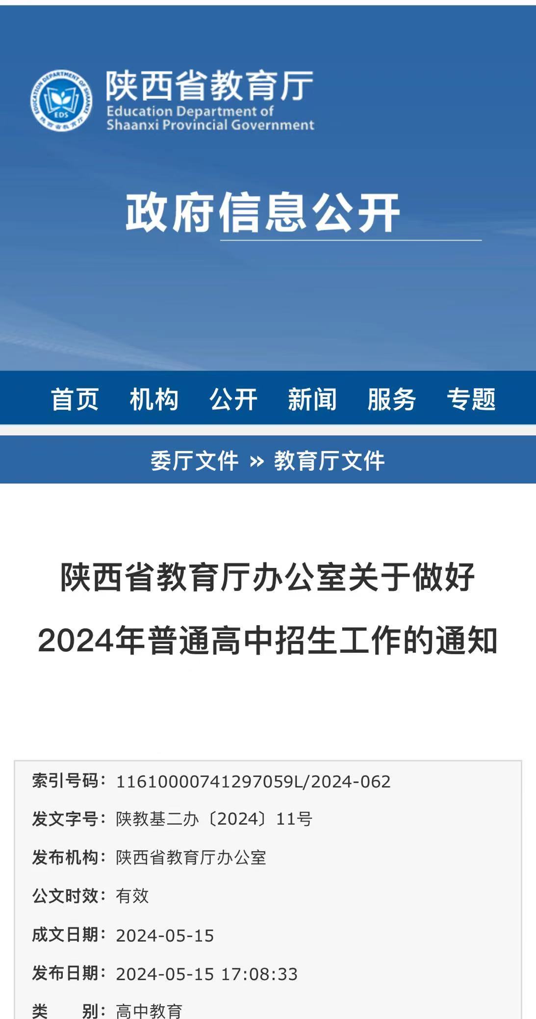 5月15日,陕西省教育厅发布“关于做好2024年普通高中招生工作的通知”。其中提到,全面取消跨市招生,承担国家特殊人才培养任务的陕西省空军、海军青少年航空学校继续按原方案招生。南方+记者 李业珅 南方日报、南方+客户端原创,未经授权不得转载 编辑 刘婷婷校对 王睿 订阅后可查看全文(剩余80%)