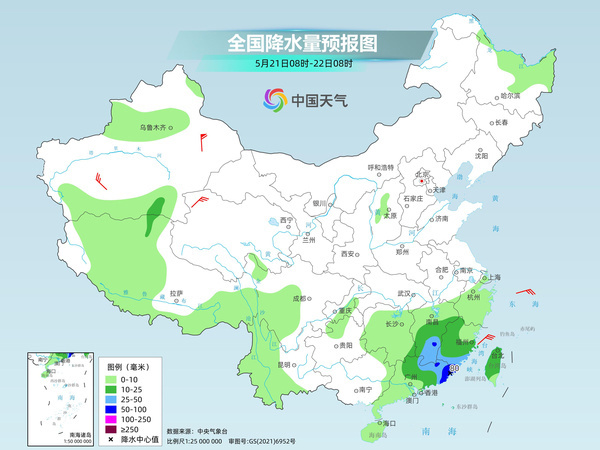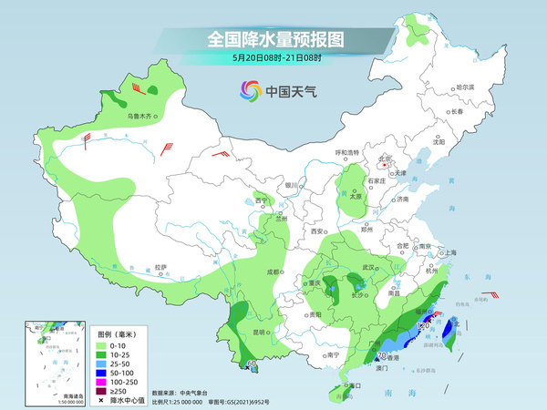 明天,广东中东部、福建南部和东部、浙江东南部、台湾岛、湖南北部、云南西北部和南部、新疆伊犁河谷等地部分地区有中到大雨,其中,福建东南部、广东东南部沿海、台湾岛中北部等地部分地区有暴雨或大暴雨。
