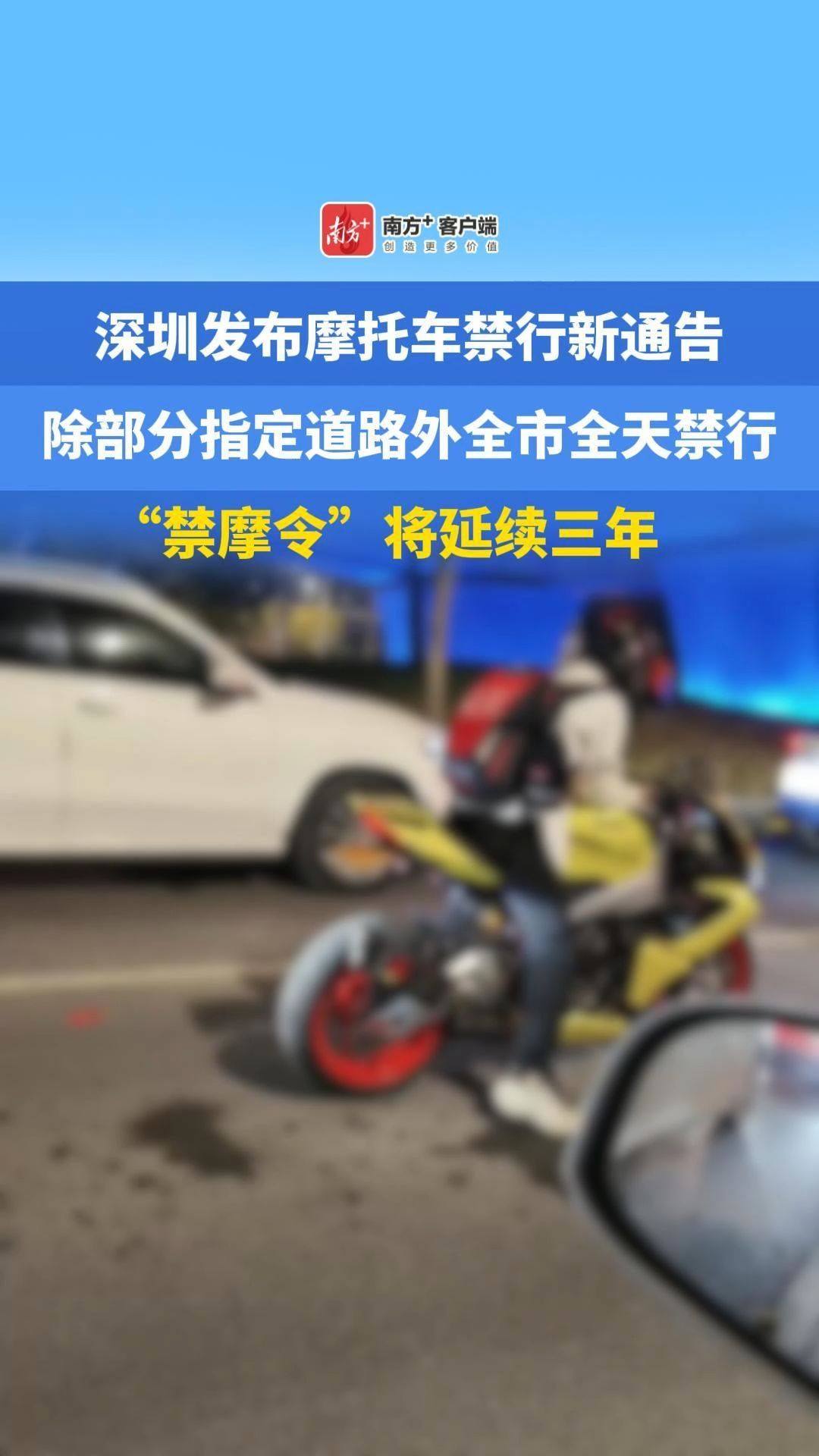 深圳发布摩托车禁行新通告,除部分指定道路外全市全天禁行,“禁摩令”将延续三年
