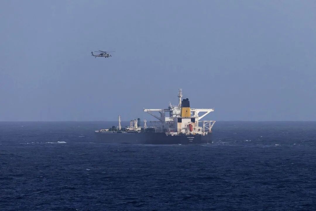 ▲2025年12月20日,加勒比海南部,美国海岸警卫队在战争部的支持下,拦截一艘载有委内瑞拉石油的邮轮。美国总统特朗普下令对所有进出委内瑞拉的受美国制裁油轮实施“全面彻底的封锁” 图/视觉中国