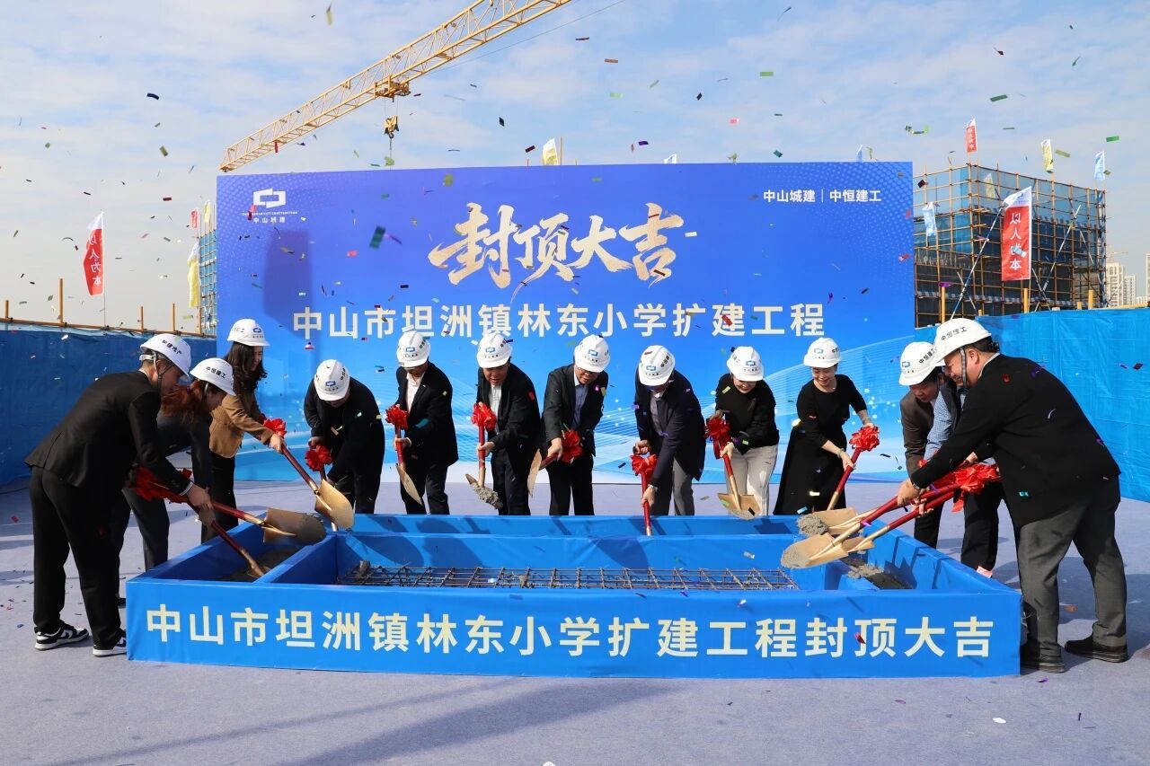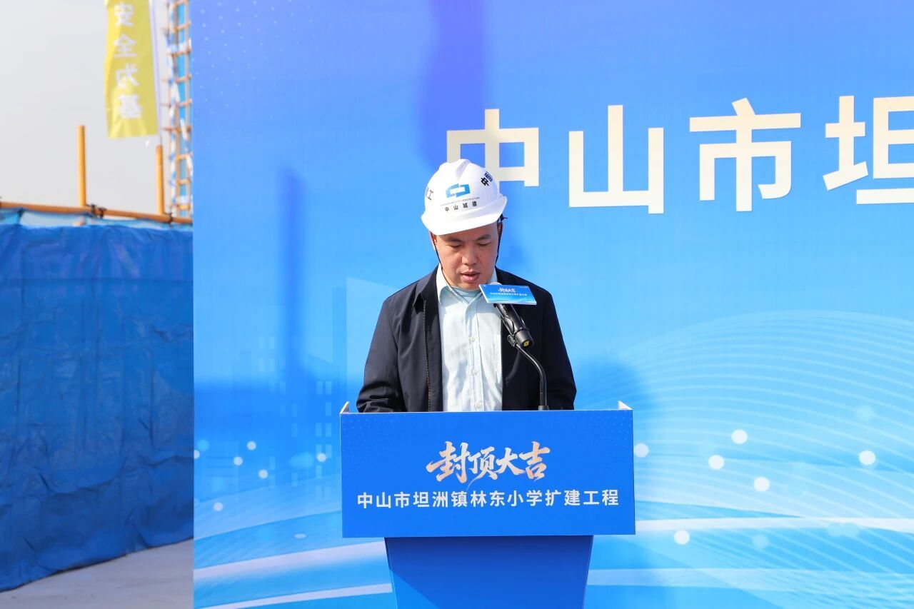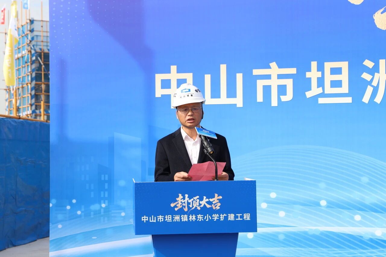 12月16日,坦洲镇林东小学扩建工程顺利封顶,标志着这项重点民生工程取得关键性进展,为项目按期交付、赋能坦洲优质教育发展迈出了坚实一步。坦洲镇党委副书记、镇长张才合,坦洲镇党委委员曹勇,中山城建集团副总经理姚锡棠以及捐赠支持项目的企业嘉宾出席仪式。