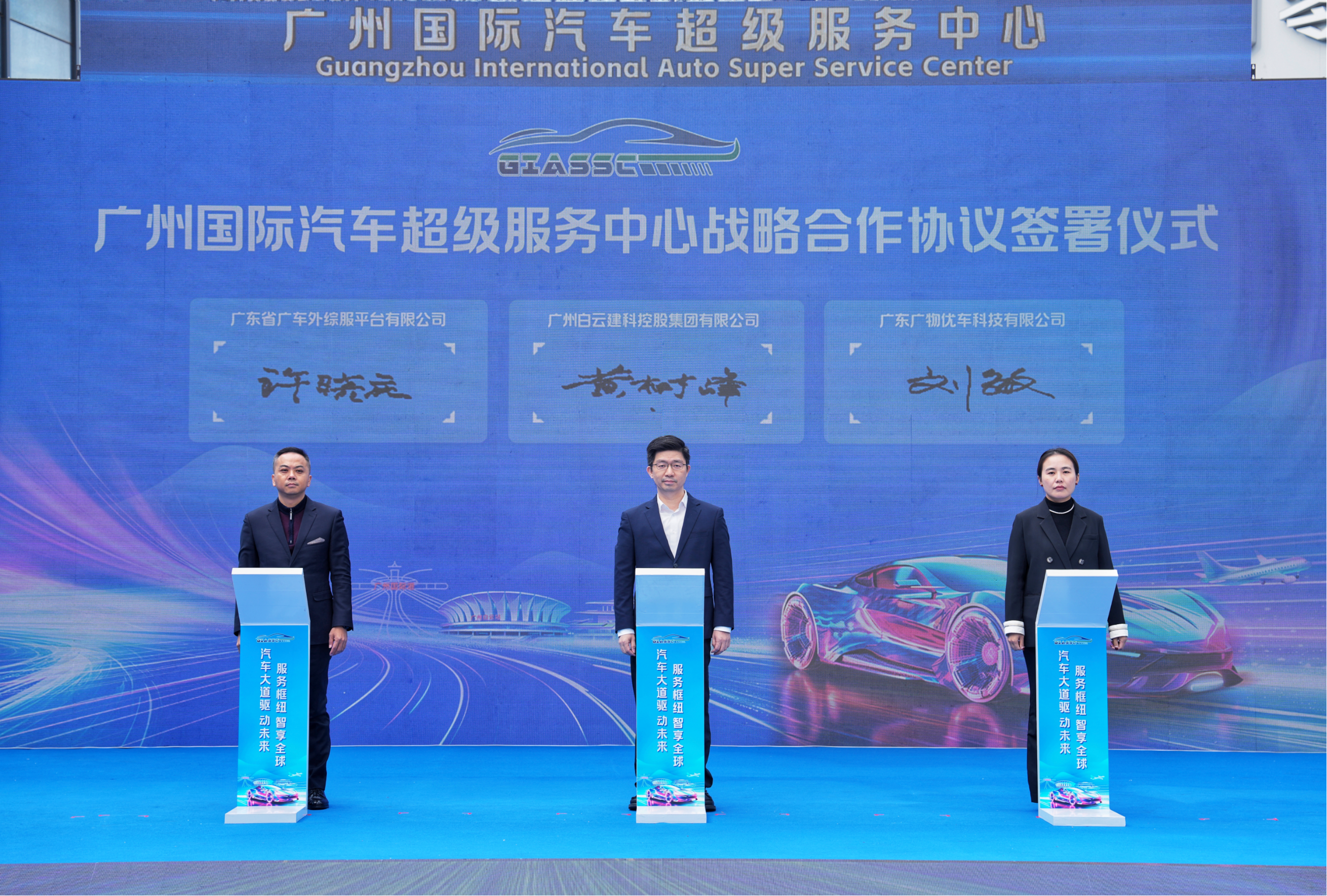 在与会嘉宾见证下,广州白云建科控股集团有限公司、广东省广车外综服平台有限公司、广东广物优车科技有限公司共同签署广州国际汽车超级服务中心战略合作协议,标志着中心建设迈入政企协同、资源整合的实质阶段,为白云区构建现代化产业体系、激活区域发展动能注入新的活力。