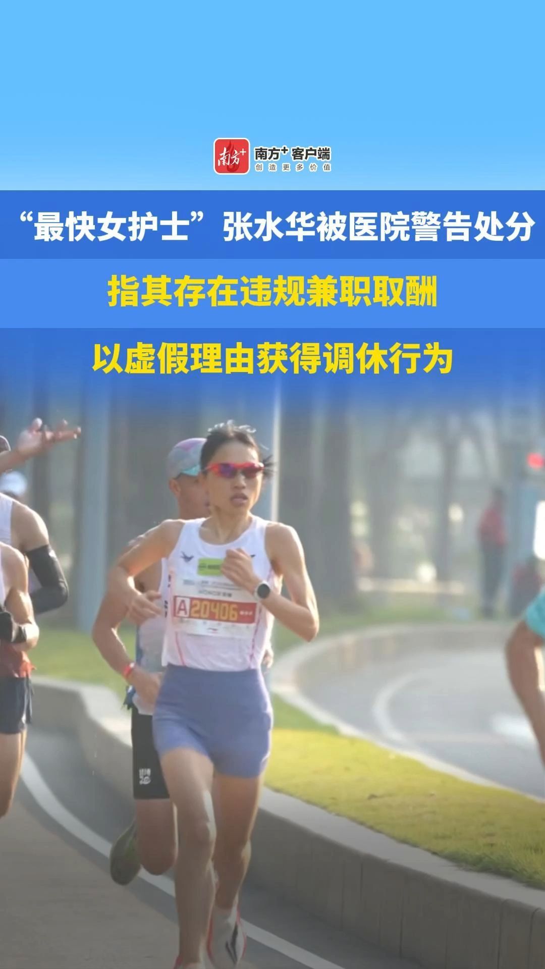 12月10日,“最快护士”张水华被福建医科大学附属第一医院处分一事引关注。有跑友公开医院的内部通报文件,指出张水华存在违规兼职取酬、以虚假理由获得调休的行为,被医院警告处分6个月,并不能参与2025年评优。据悉,该处分为11月中旬作出,未计划对外公布。医院工作人员称,医院已介入调查“被处分文件为何泄露”。详情>>