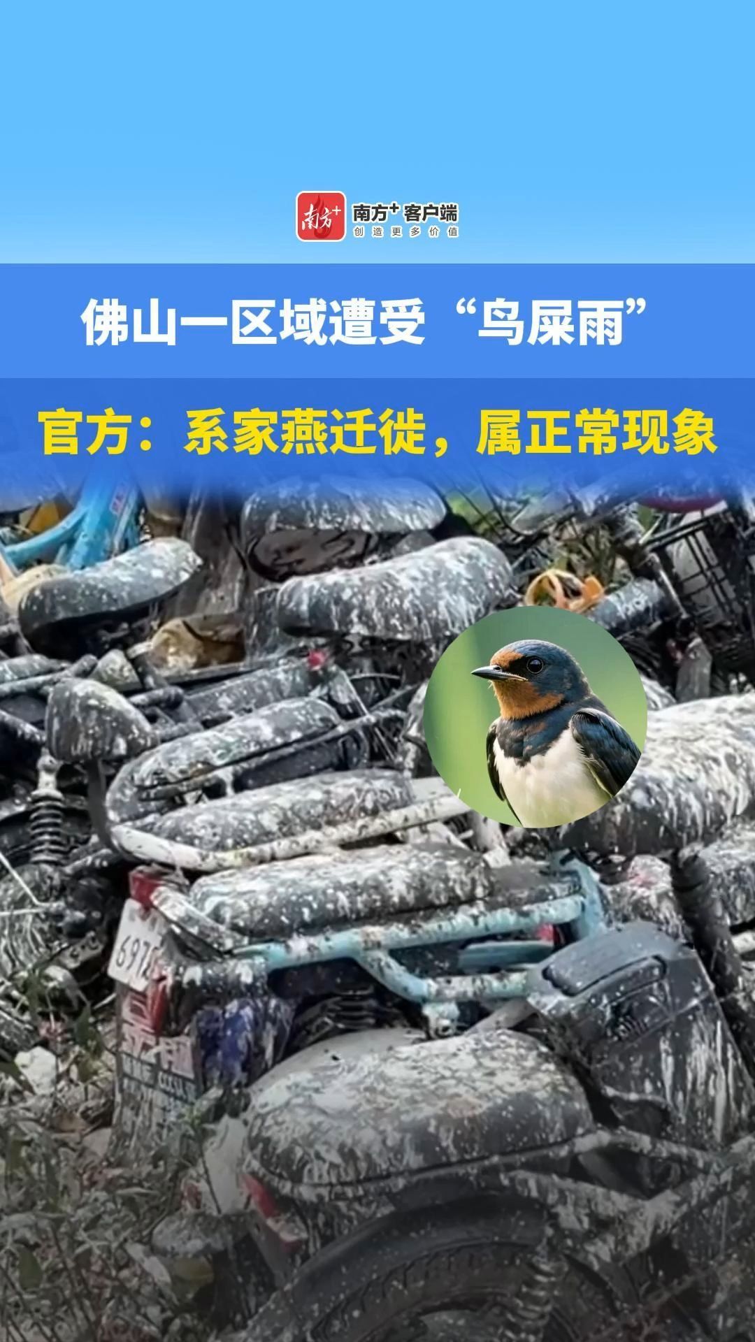 官方释疑佛山一区域“鸟屎雨”:系家燕迁徙,属正常现象