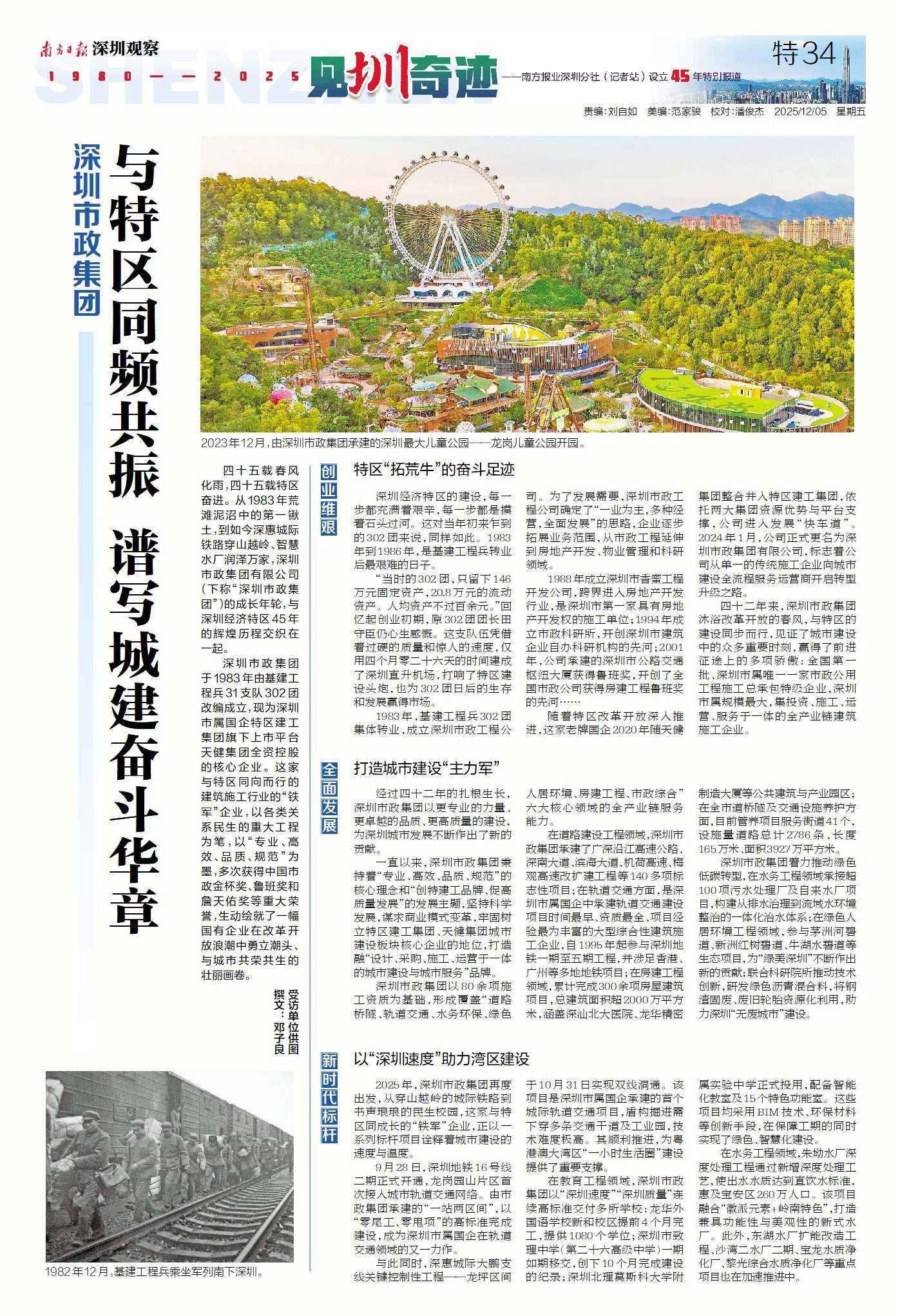 深圳市政集团于1983年由基建工程兵31支队302团改编成立,现为深圳市属国企特区建工集团旗下上市平台天健集团全资控股的核心企业。这家与特区同向而行的建筑施工行业的“铁军”企业,以各类关系民生的重大工程为笔,以“专业、高效、品质、规范”为墨,多次获得中国市政金杯奖、鲁班奖和詹天佑奖等重大荣誉,生动绘就了一幅国有企业在改革开放浪潮中勇立潮头、与城市共荣共生的壮丽画卷。