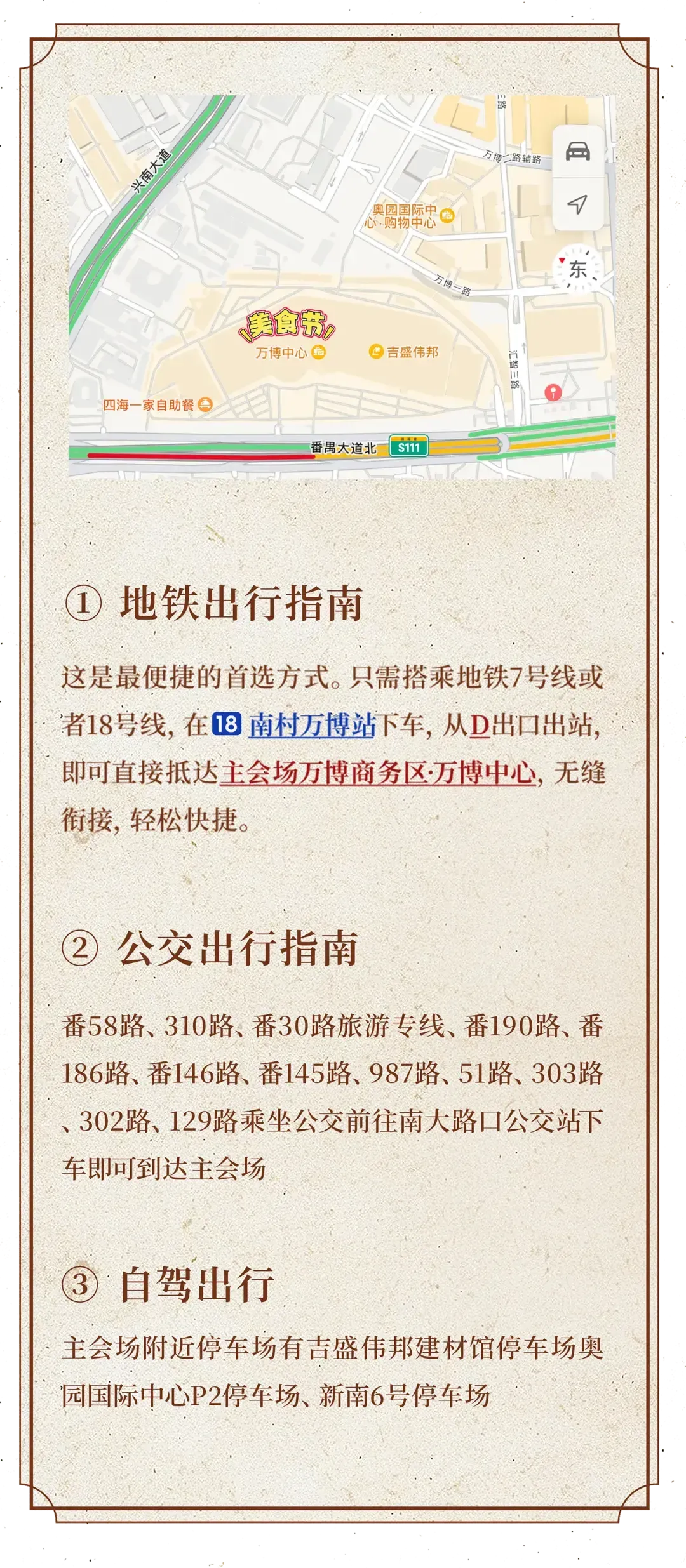 想要来美食节逛吃的各位街坊快码住!贴心的出行攻略已经为你备好,无论你是地铁党、公交族还是自驾控,照着下面走就对了~