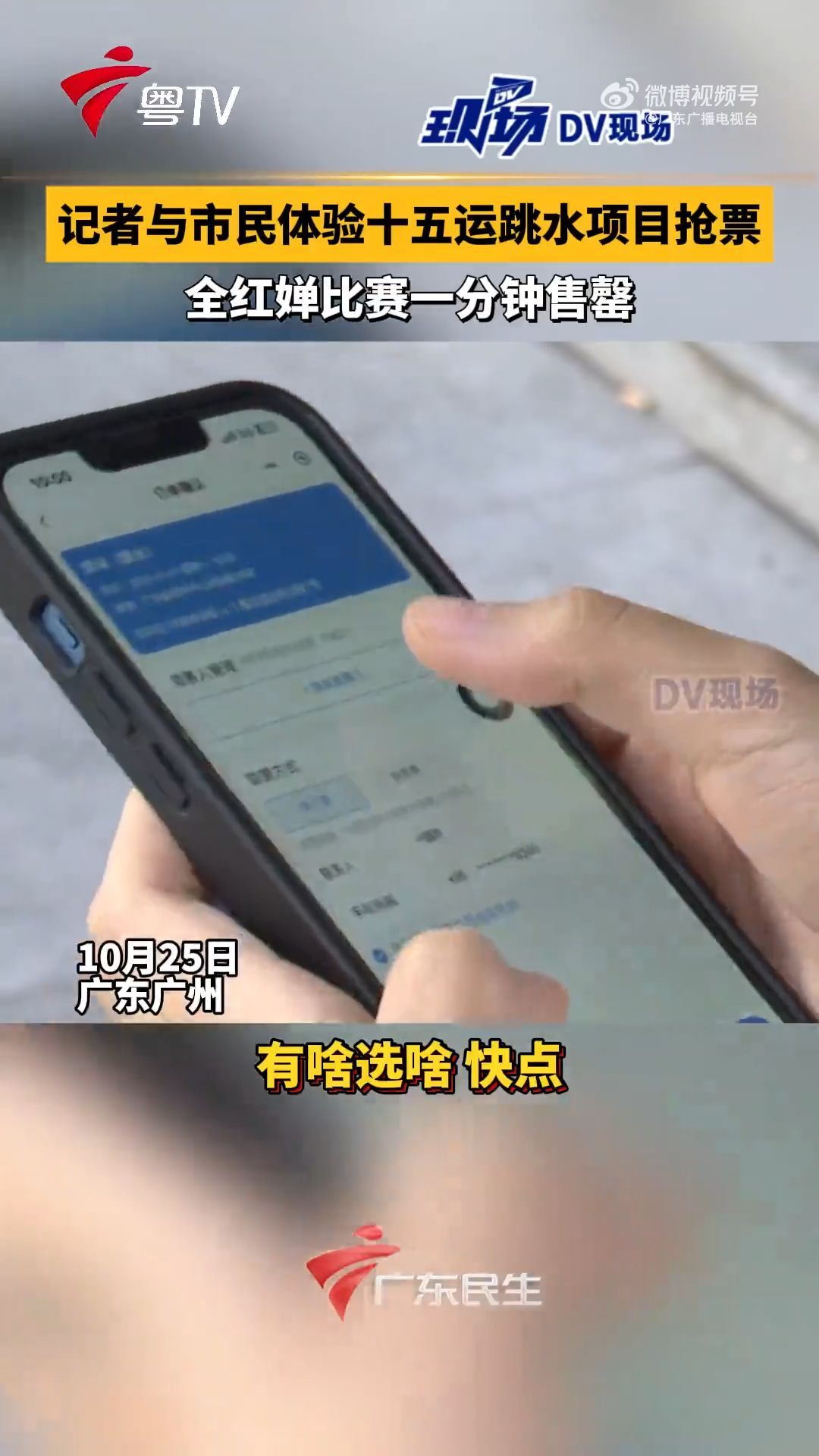 10月25日上午10点,备受瞩目的全运会跳水比赛门票正式开售,记者体验发现,全红婵比赛门票一分钟内即售空。
