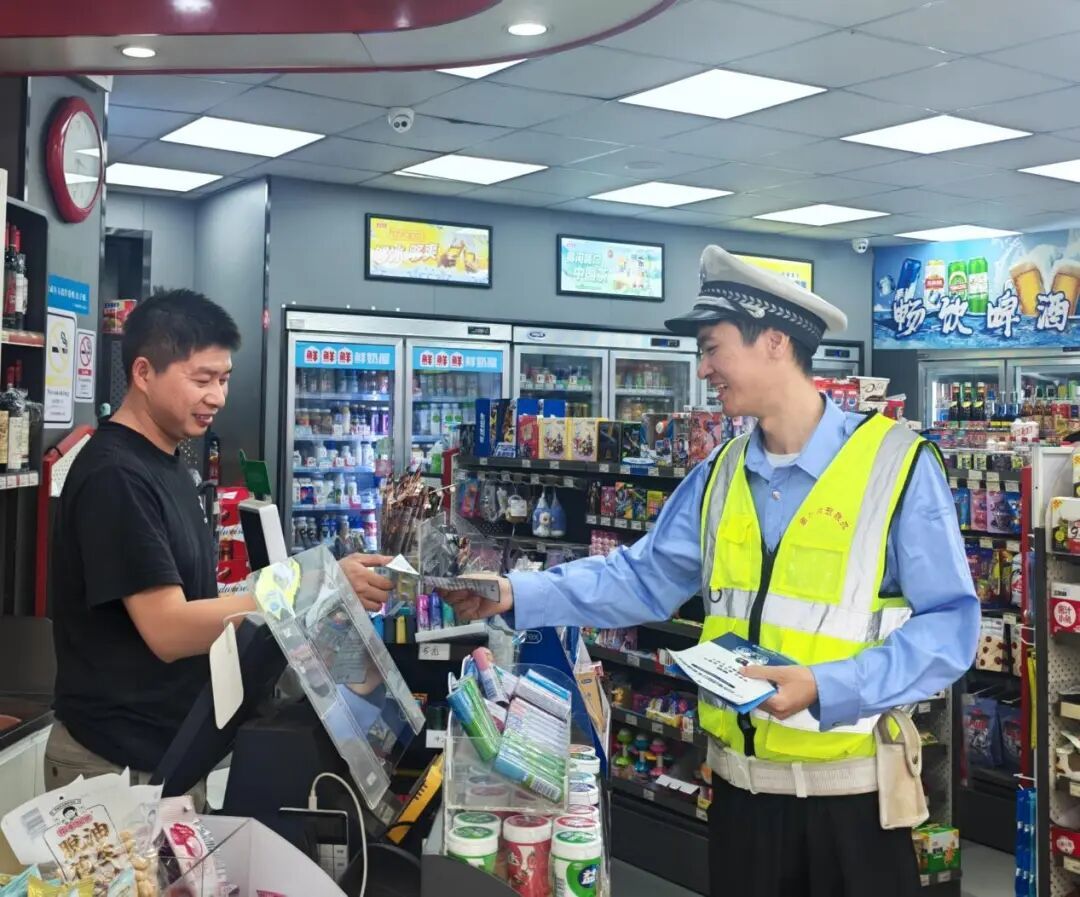 深入辖区沿街商铺,通过面对面交流的形式,讲解礼让斑马线、拒绝酒驾、不超速行驶等交通法规常识。