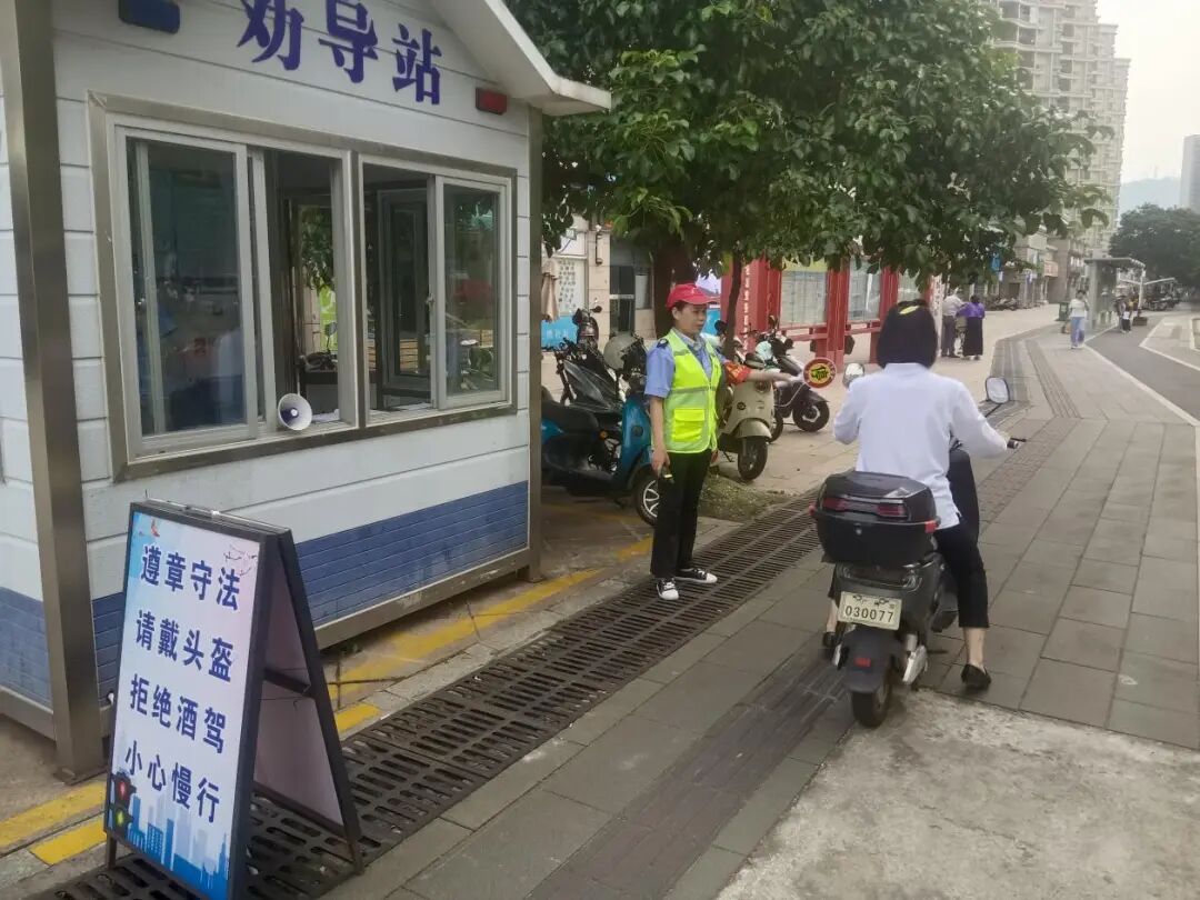 行动期间,南沙街道道安办以“精准宣传+现场劝导”为核心,在依托辖区23个固定交通劝导岗常态化值守的基础上,同步安排人员在商圈、社区、学校周边开展劝导行动,通过“发现、劝导、纠正”一体化模式,重点引导摩电骑行者规范佩戴安全头盔,纠正逆行、闯红灯等违法行为;针对全运会前商圈及重点路段车流激增的情况,增派人员开展车辆疏导与规范停放引导,有效缓解交通拥堵。行动中,共发动交通劝导员约410人次,纠正摩电不戴安全头盔、闯红灯等轻微交通违法6570余宗,向群众发放安全宣传资料7260余份,有效强化了辖区交通安全防线。