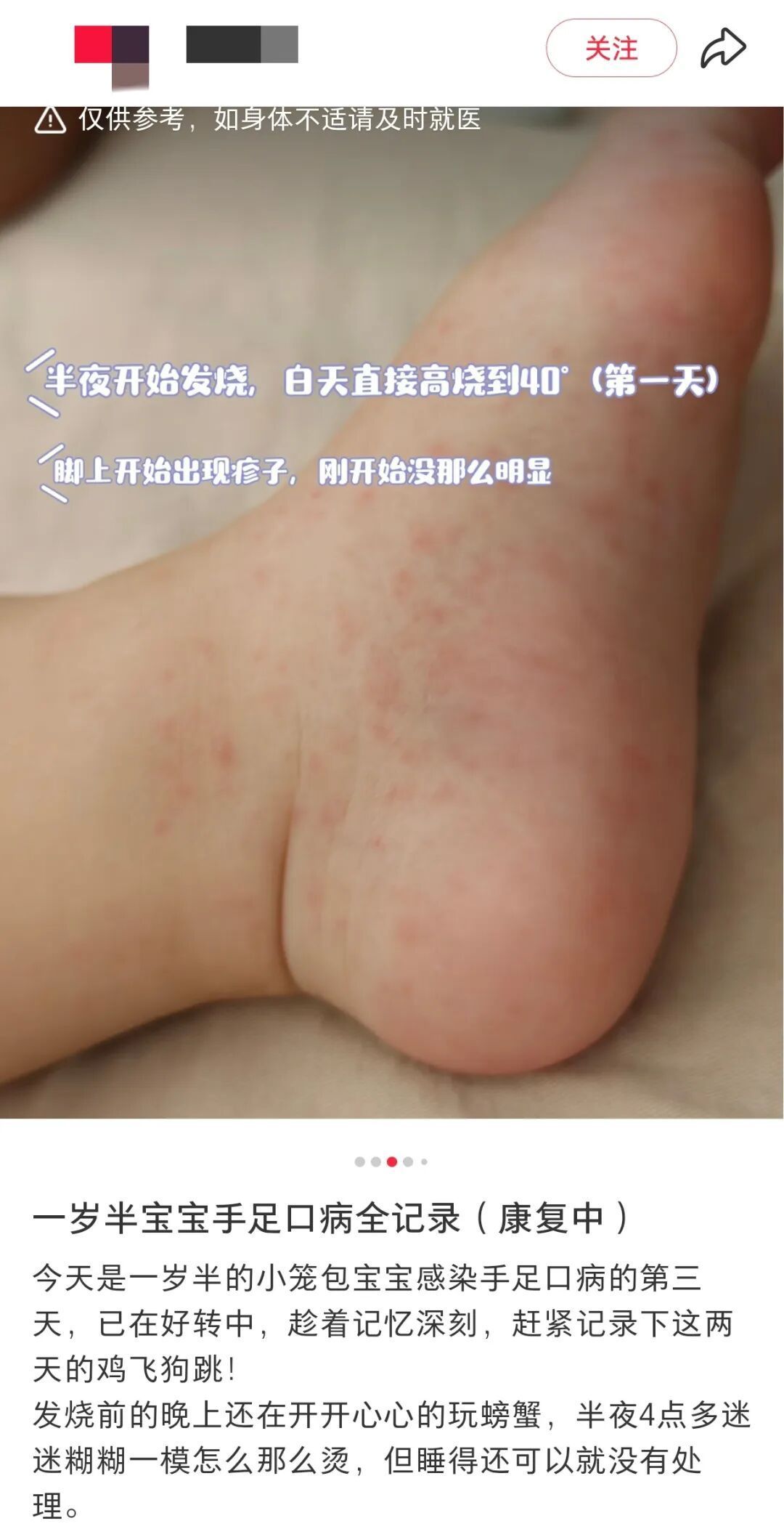 三是突然发烧,多数娃会突然发烧,体温多在38℃以上,少数娃可能不发烧,但只要同时出现“出疹+口腔不适”,就得警惕。
