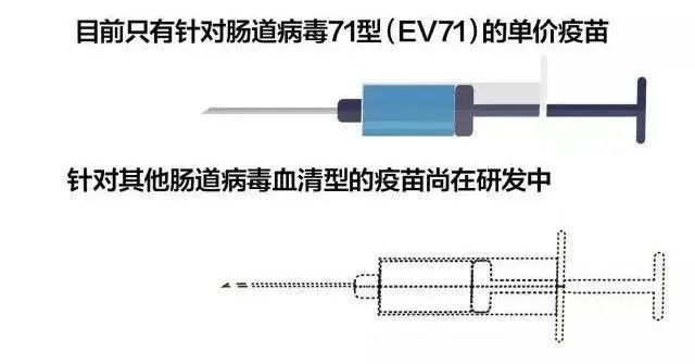 温馨提醒:目前市面上只有针对EV71病毒的单价疫苗,但是引起手足口病的病毒有20多种,打了疫苗的宝宝可能因为感染EV71以外的肠道病毒而发生手足口病,所以防护不能松懈。