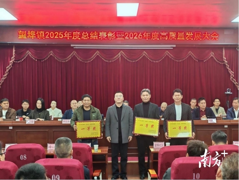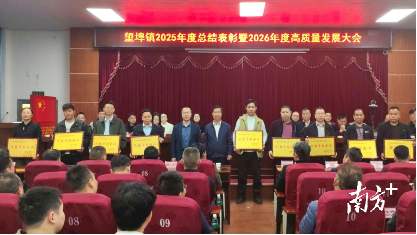 现场观摩结束后,望埠镇随即召开2025年度总结表彰暨2026年度高质量发展大会,会议由党委副书记、镇长黎章品主持,镇村干部职工、驻镇帮镇扶村工作队成员、辖区内机关事业单位负责人、企业代表等约300人共同参加。