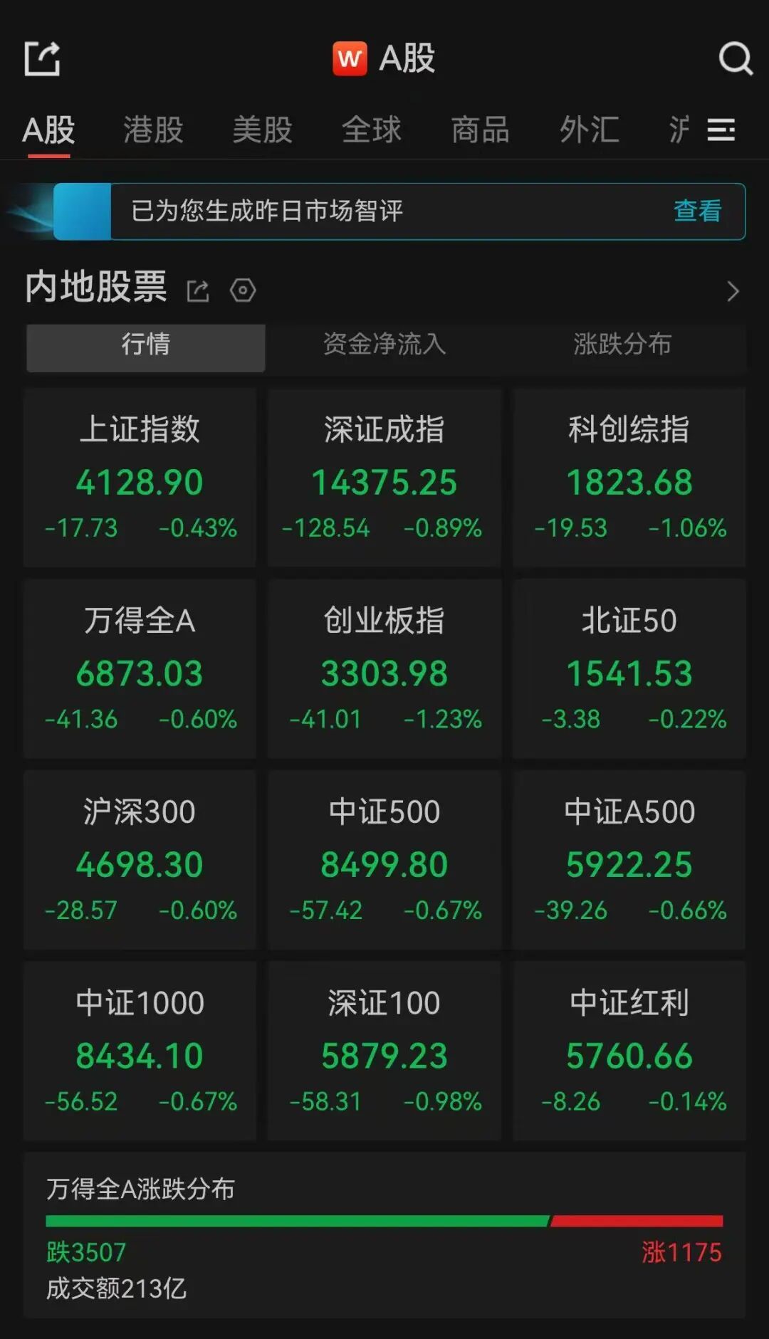 27日,A股三大指数集体低开。Wind数据显示,上证指数低开0.43%,深证成指低开0.89%,创业板指跌1.23%。板块方面,半导体芯片、玻纤、光通信等板块指数跌幅居前。 编辑 朱琦 订阅后可查看全文(剩余80%)