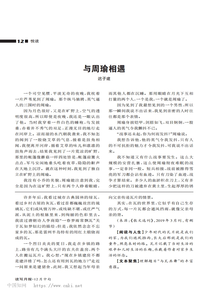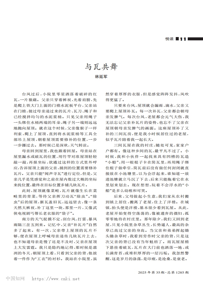 林延军的散文作品《与瓦共舞》被江西省优秀期刊《读写月报》转载