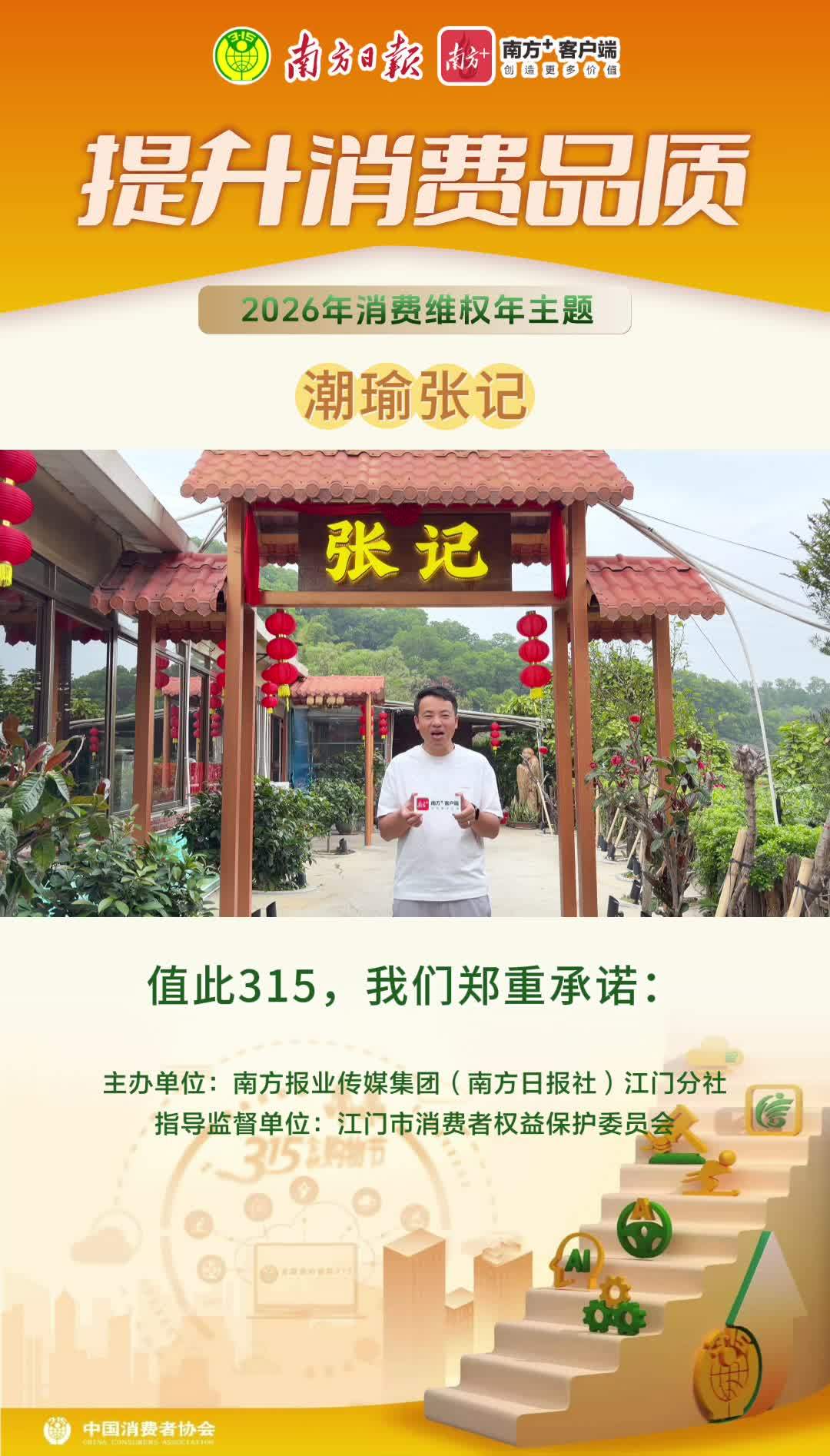 为进一步优化消费环境、提振消费信心,紧扣2026年“提升消费品质”消费维权年主题,今年“3·15”国际消费者权益日,在江门市消费者权益保护委员会的指导监督下,南方+江门频道开展2026年江门“3·15”主题活动。