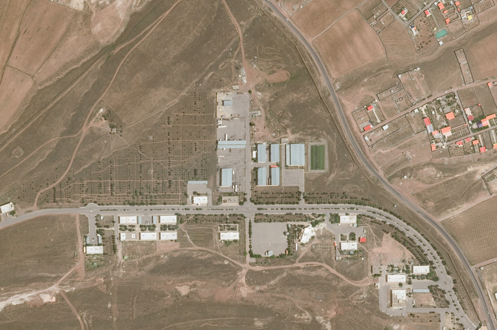 (卫星图像)当地时间2025年5月29日,伊朗东阿塞拜疆省,阿曼德导弹基地(又称大不里士北部导弹基地)的建筑和配套基础设施。