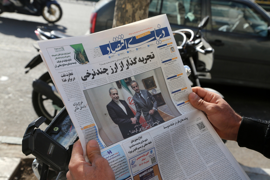 当地时间2026年2月17日,伊朗德黑兰,一名男子阅读报纸。当日,伊朗与美国在日内瓦举行的第二轮间接谈判被伊朗各报纸广泛报道。