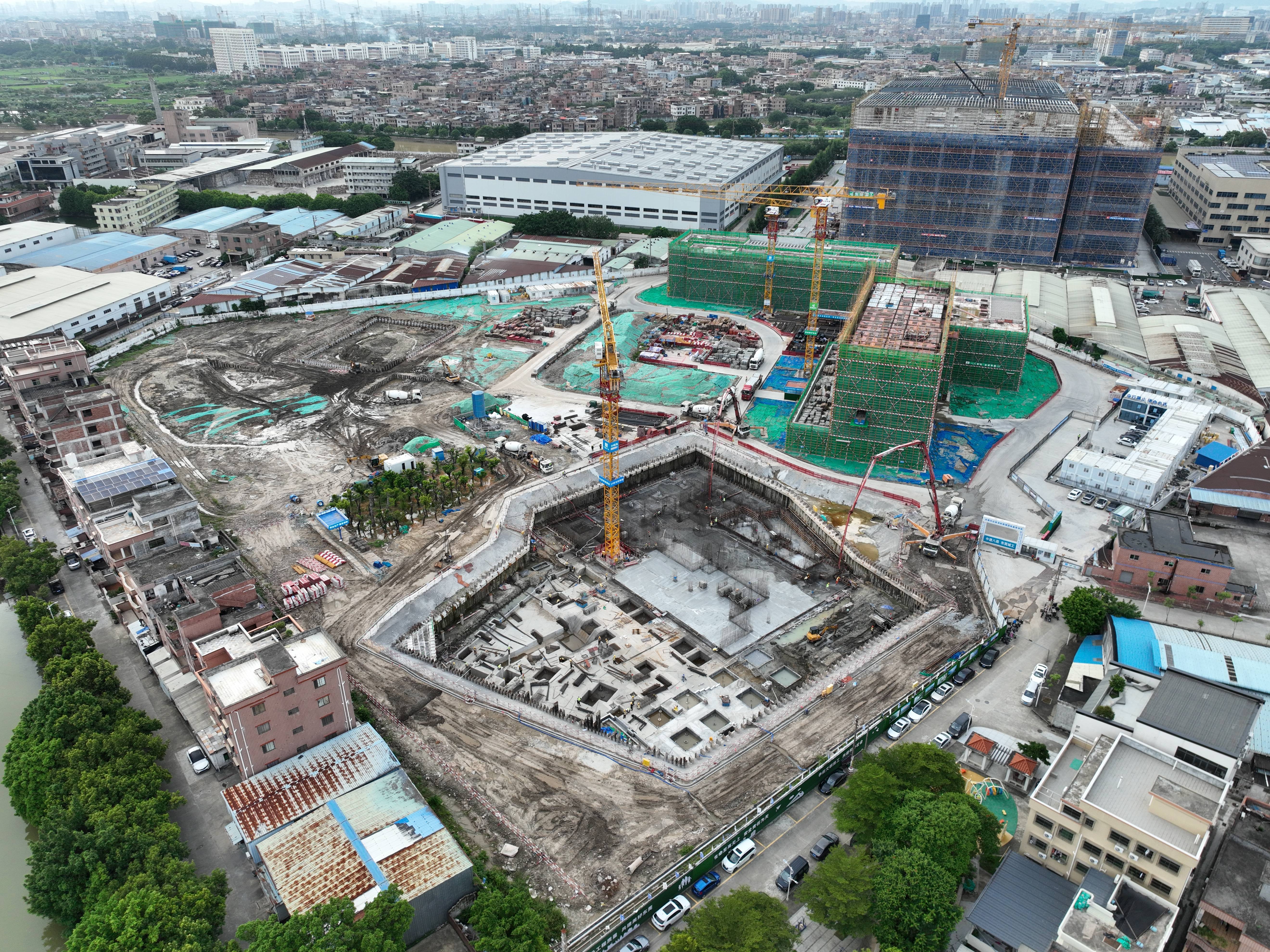 塔吊旋转,钢筋林立,在东莞市万江街道一片热火朝天的工地上,由东莞市城市工程建设集团有限公司(下称“城工集团”)与中建八局第一建设有限公司联合承建的东莞市应急消防救援训练基地正以肉眼可见的速度拔节生长。